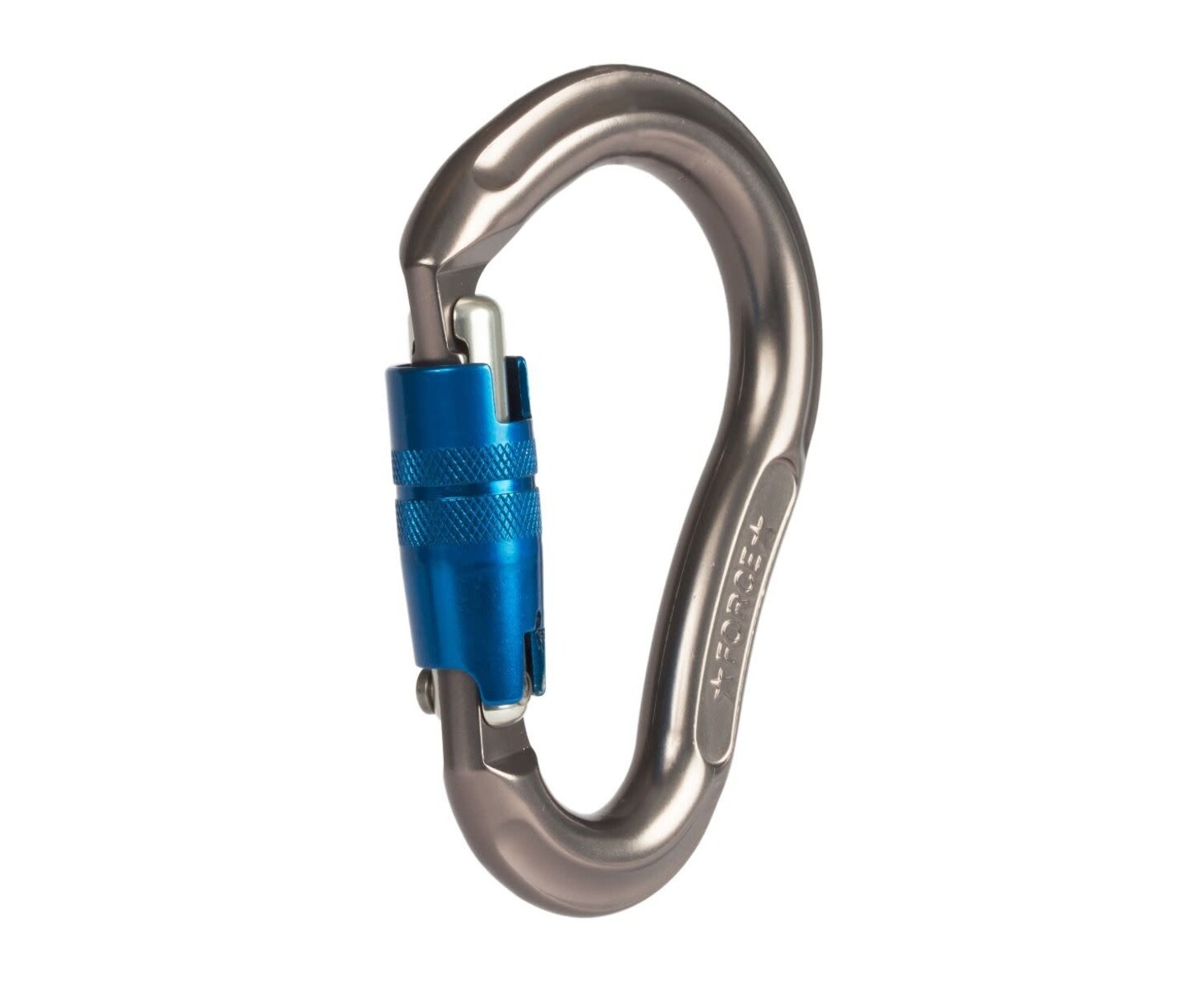 CloseThe Force series Jake HMS Carabiner makes a superb belay/rappel carabiner because of its broad (and rounded) rope bearing surface. This friction interface makes both rappelling and lowering exceptionally smooth and predictable. The Jake is equipped with a side-swing gate that provides sizable clearance and ease of use; this combined with the spacious basket make it ideal as a master-point carabiner. The Keylock design prevents snagging on ropes, webbing, and hardware. Available in Screw-lock and Twist-lock versions.