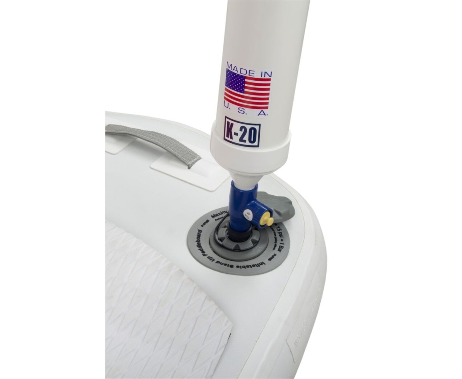 - Hook the K-Air up to your K-Pump and day dream while you pump away. When the board reaches 15 psi, excess pressure is bled away, with an audible sound that lets you know it's time to paddle.
