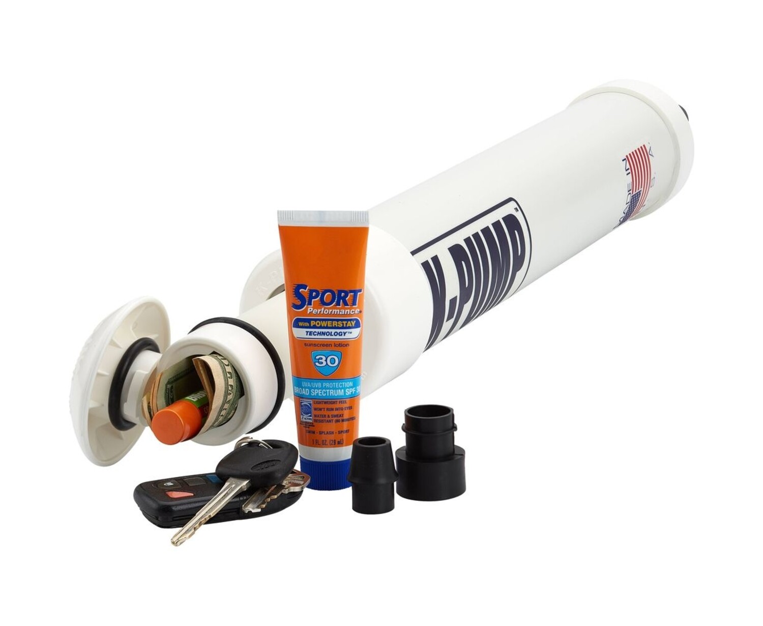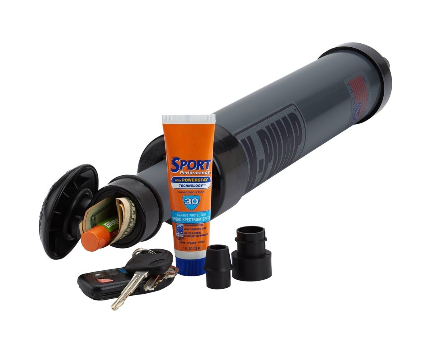 - Innovative Cache Cap provides small, waterproof internal storage within the shaft of the pump. The perfect place to store adapters and keys along with small first aid or field-repair essentials.