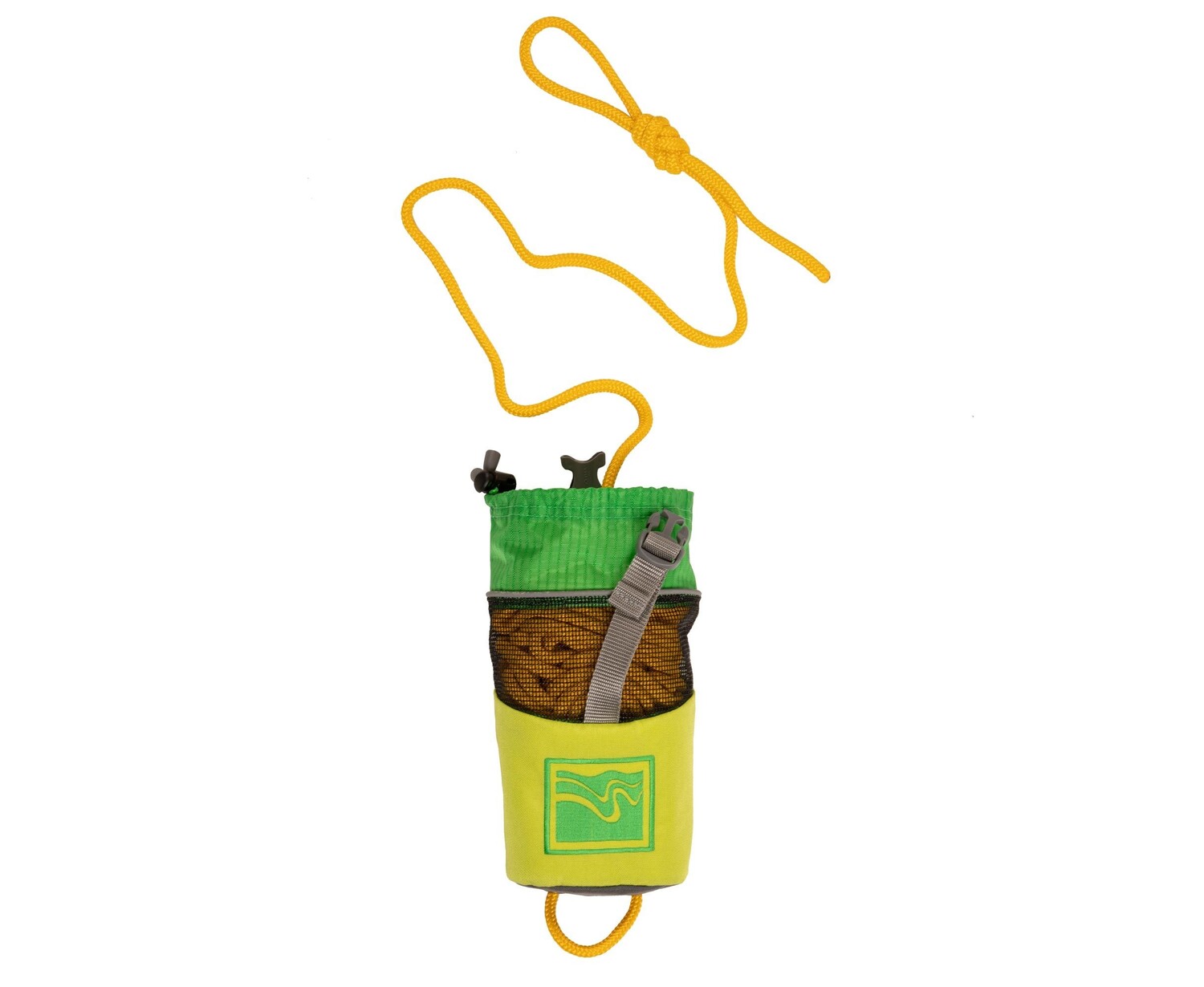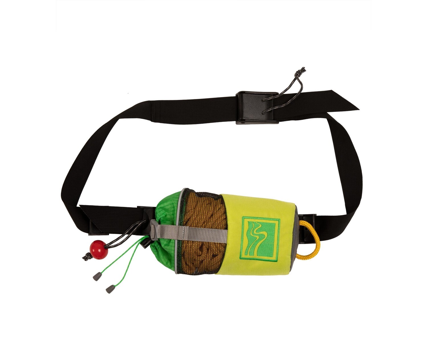 Be prepared for any situation on the water, with the Huck 50' Throw Bag with Belt. Easy to throw and quick to repack, the compact bag is packed with 50 feet of floating polyethylene core rope with a maximum strength of 1465 pounds. Ergonomically designed to fit flat against the body. Quick-drying mesh top, foam side panels for flotation and reflective piping. The quick-release, adjustable Nylon belt allows paddlers to wear the bag on their waist or in their lap. Designed to release your Throw Bag easily from the body without removing the Belt.