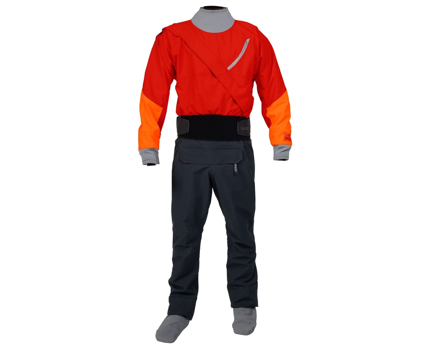 Kokatat's highly regarded Meridian Dry Suit is the definitive whitewater and sea kayaking dry suit. 2021 updates include the GORE-TEX PRO fabric that makes a lighter, more rugged and durable suit, a double zipper entry flap to keep water out of your boat, new streamlined patterning on the legs for comfort and mobility, a relief zipper flap, dual adjustable Ariaprene overskirt and GORE-TEX PRO socks. The suit still features a zippered chest pocket, latex gaskets with neoprene punch through over cuffs. A limited lifetime warranty and Kokatat's custom sizing and option program ensures completely dry comfort for the life of the garment.