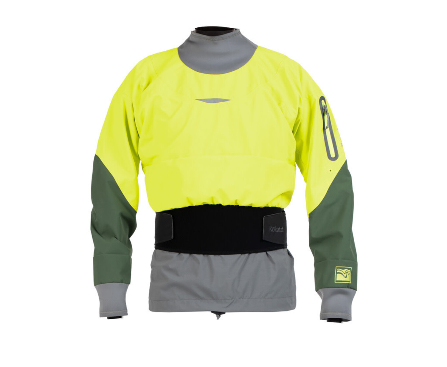 Made with the latest GORE-TEX PRO material that makes a lighter, more rugged and durable dry top. The ŌM is Kokatat's most advanced dry top to date. It features a new pattern for improved fit and mobility as well as latex gaskets with neoprene punch through cuffs on the neck and wrists and a self-draining pocket on the left shoulder. The ŌM has a lightweight GORE-TEX PRO inner skirt as part of its adjustable double tunnel waist featuring Ariaprene, a sustainable alternative to neoprene, and provides an infinitely adjustable perfect fit.
