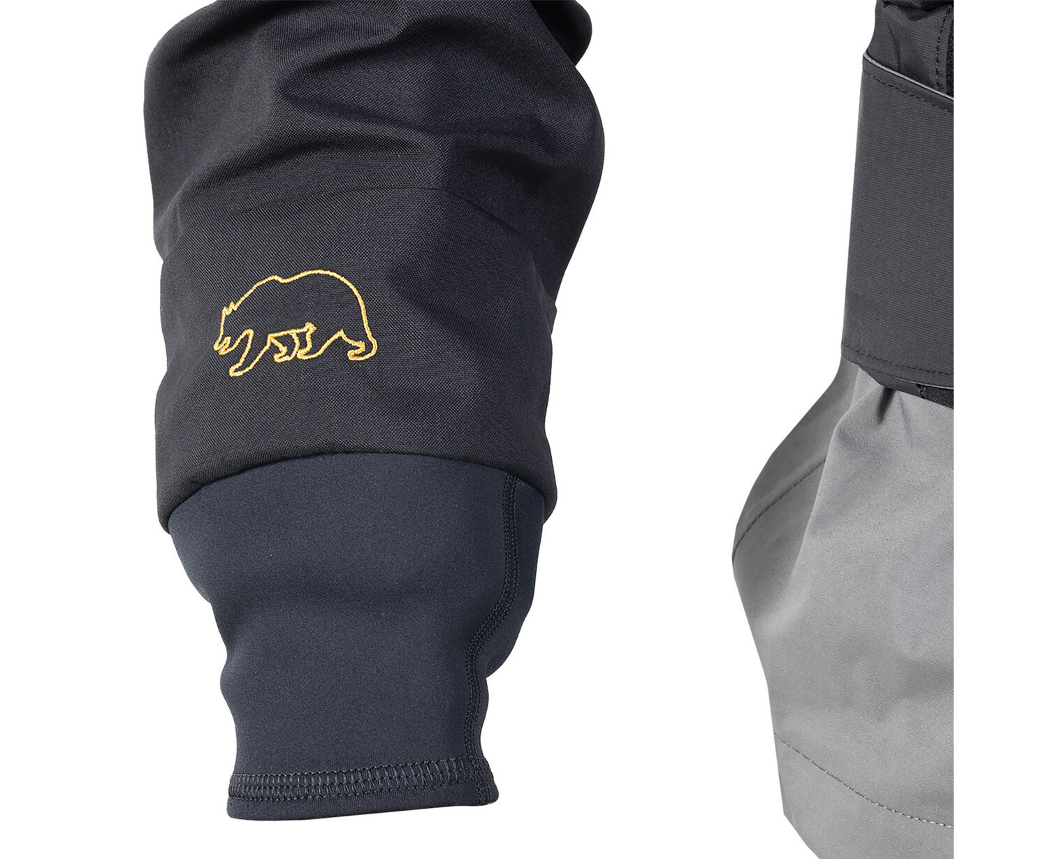 - Latex neck and wrist gaskets with neoprene punch through collar and cuffs
