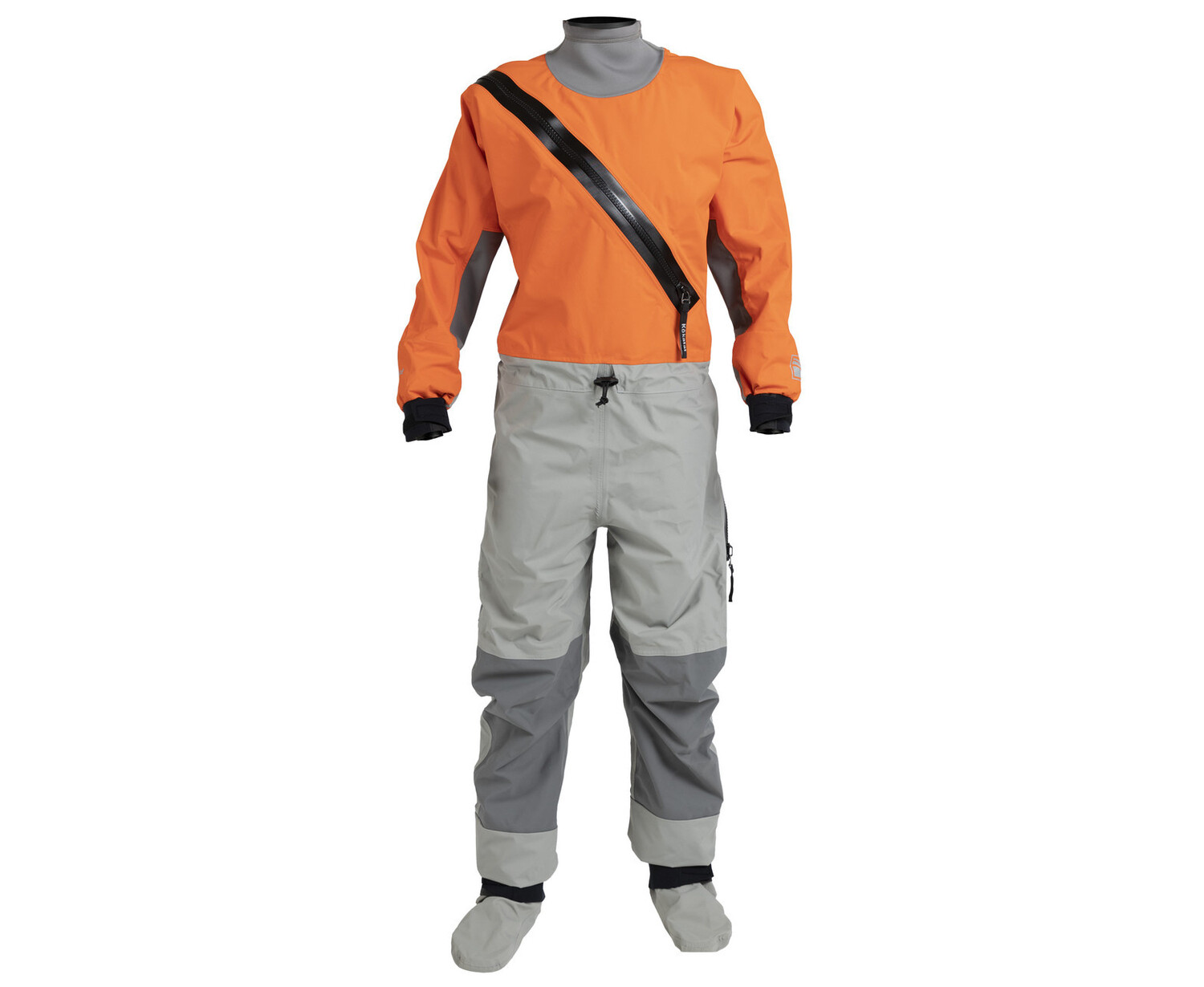 The SuperNova is ideal for rafters, paddle rafters, and IK (inflatable kayak) paddlers looking for a durable and more comfortable alternative to wet suits or paddling jackets. This Hydrus 3.0 layer paddling suit has all the features of Kokatat's top end dry suits, but with a neoprene neck gasket instead of the traditional latex and flexible entry and relief zippers.