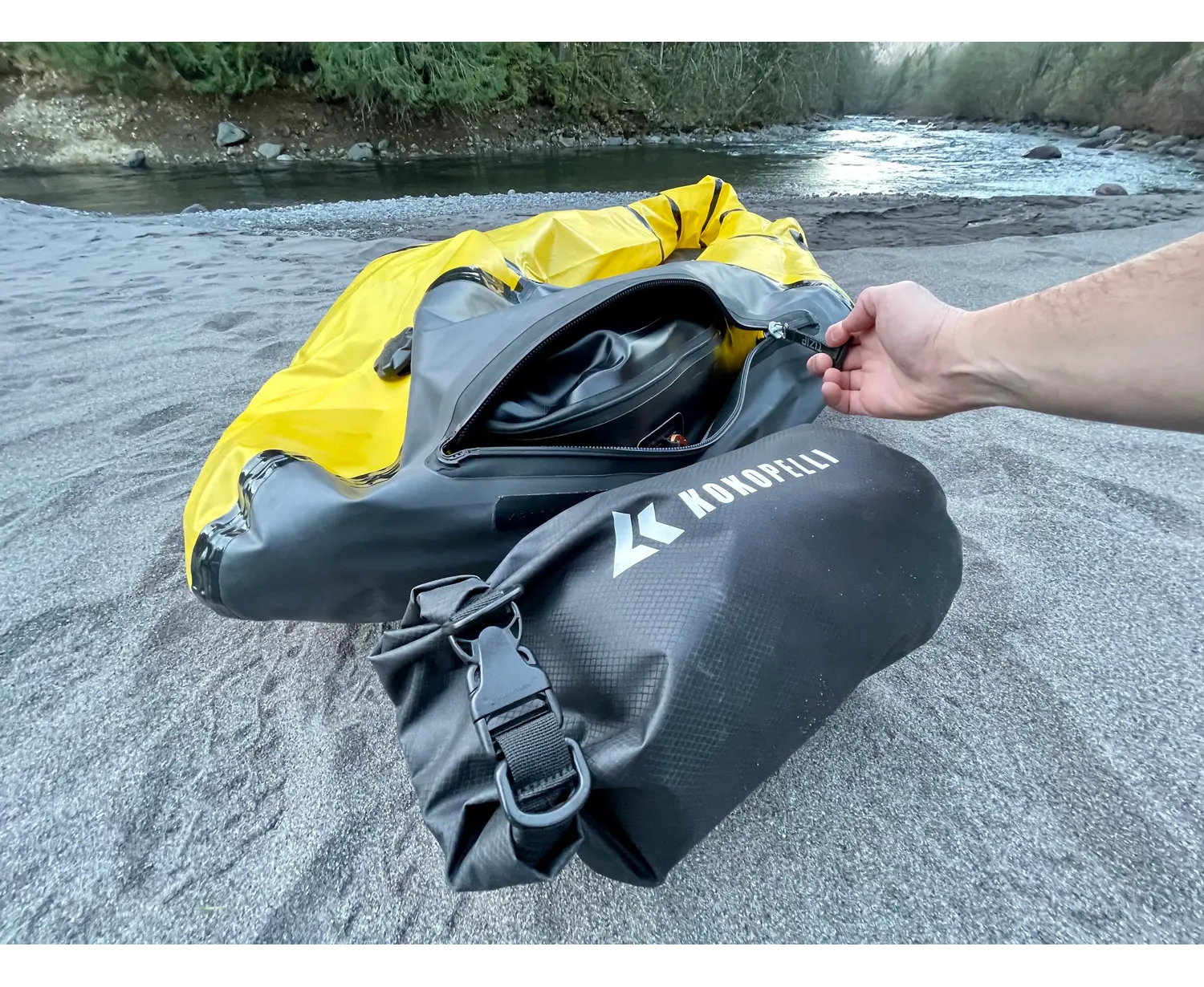 Both sizes will fit into the side pontoons of any packraft with a TiZip storage zipper compartment.