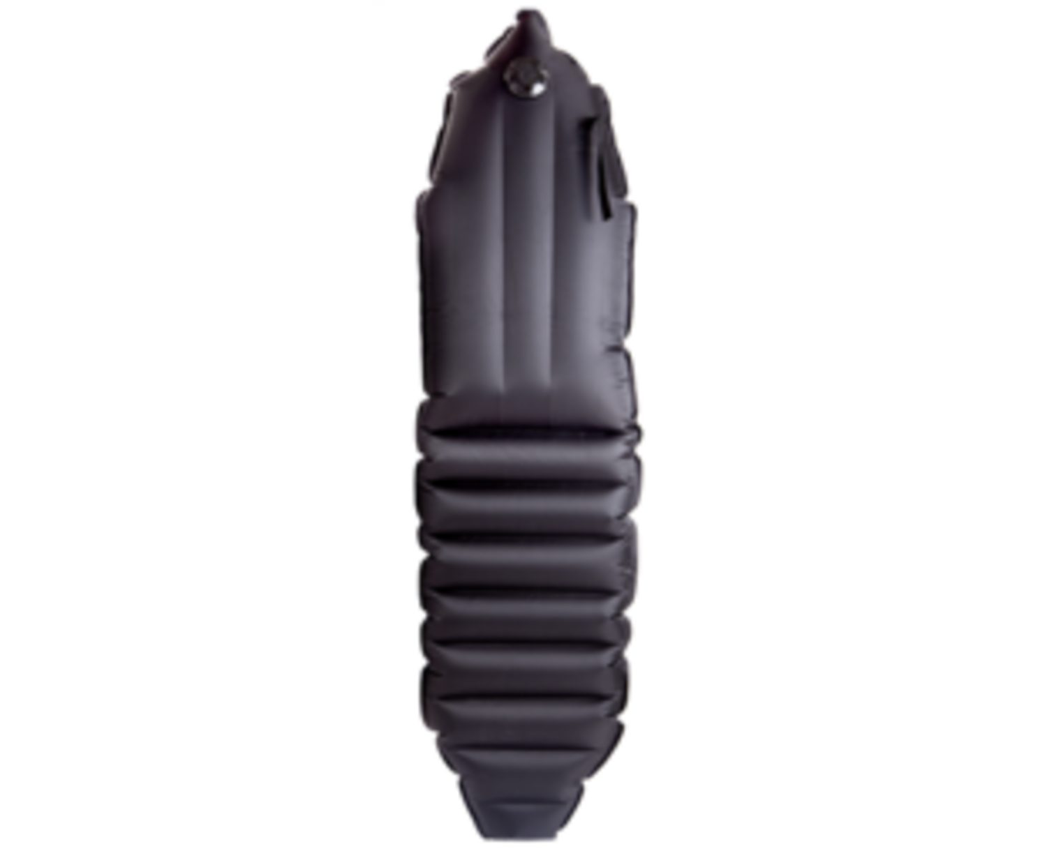 Reinforced to survive dogs, fish hooks, or boots, the Inflatable Floor tapers from a 7 in (17.8 cm) seat to a 4 in (10.2 cm) floor and attaches to the stern of the packraft with a 1 in (2.5 cm) piece of webbing.
