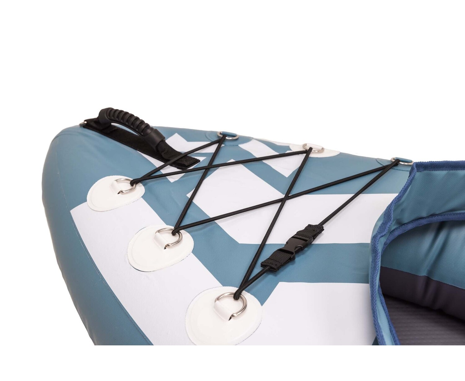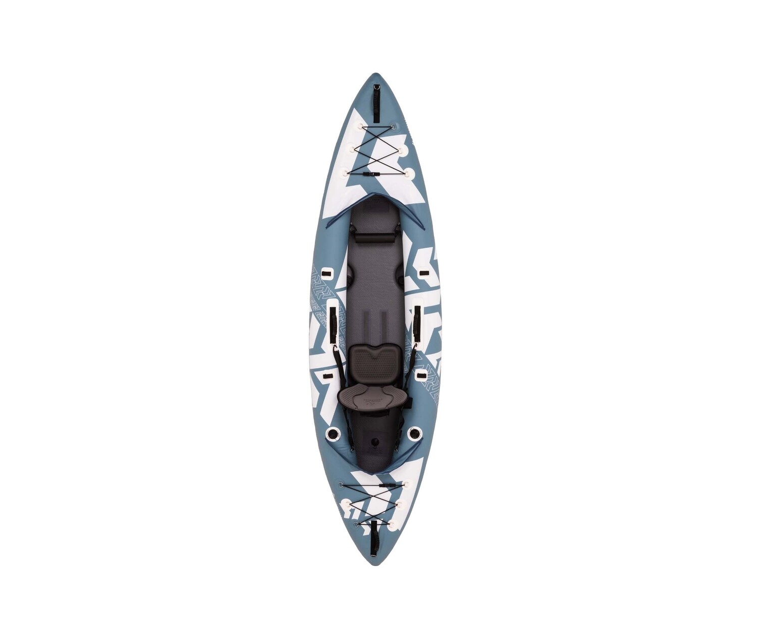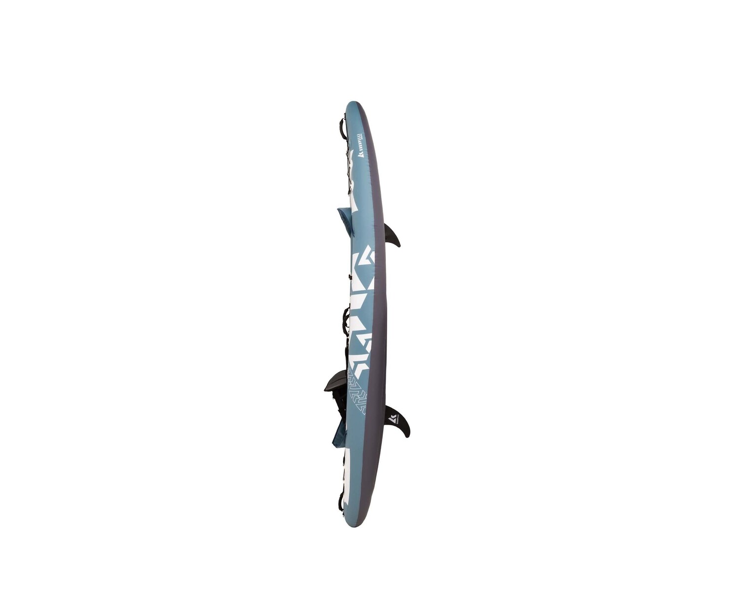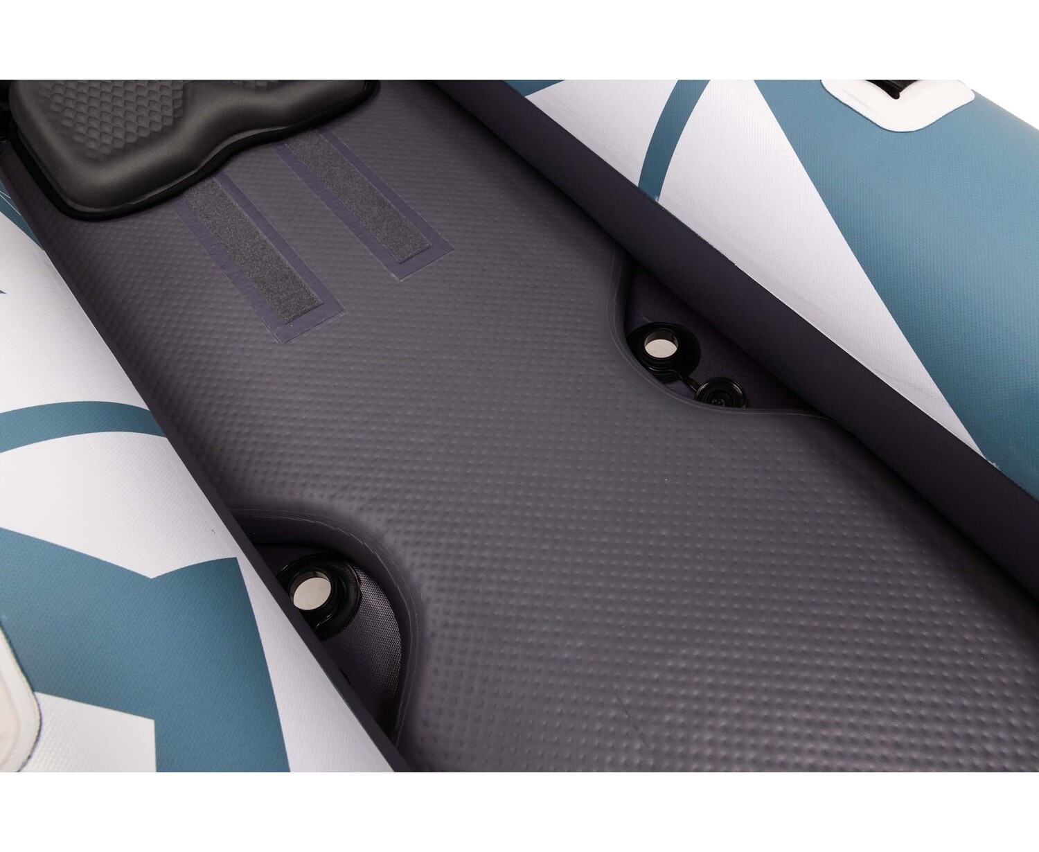 The two-piece design packs down to an impressively small size and weighs in at 24lb when fully equipped with key accessories (a minimum boat only weight of 13.75lb.) 1000 denier reinforced PVC construction makes up the two pontoons and a removable drop-stitch floor provides stiffness, added flotation, and enhances tracking capabilities.