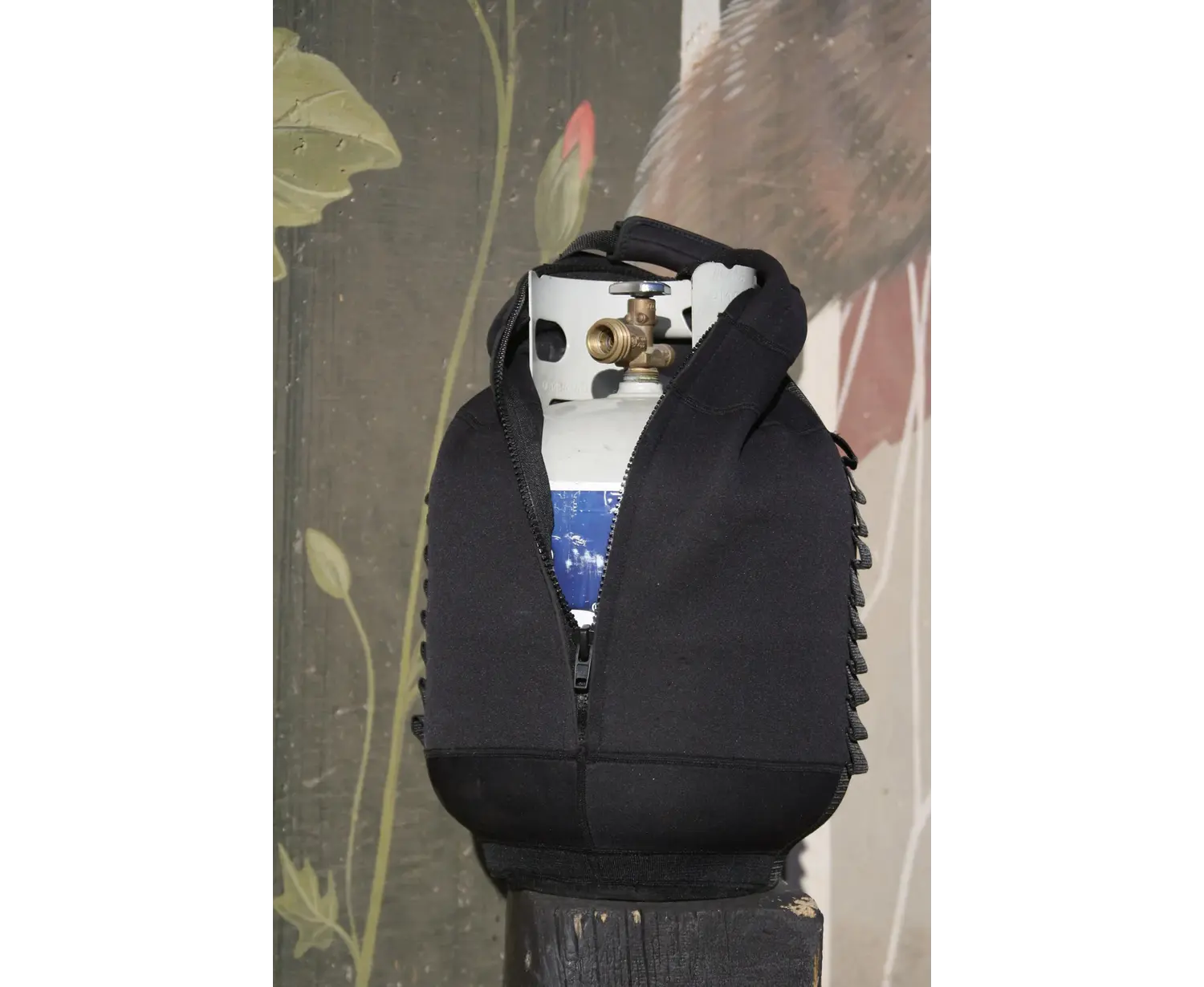 Stop the clank! Tie that propane tank down in your truck or your raft with Burt's Tank Top. With 3mm neoprene, you will cut down on freezing at altitude and will increase your total burn time. Reinforced with Kevlar on the sharp bits, Molle tie downs on both sides, 1” webbing loops around the bottom, HD YKK Zipper in the back and a soft grip handle. Finally, a real tank cover.