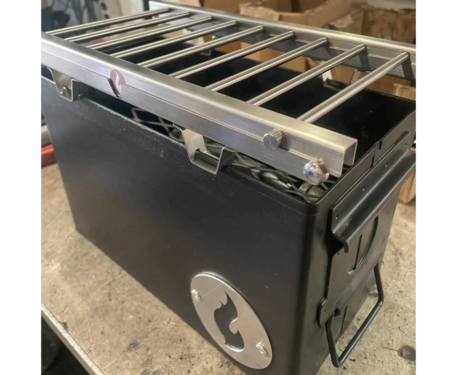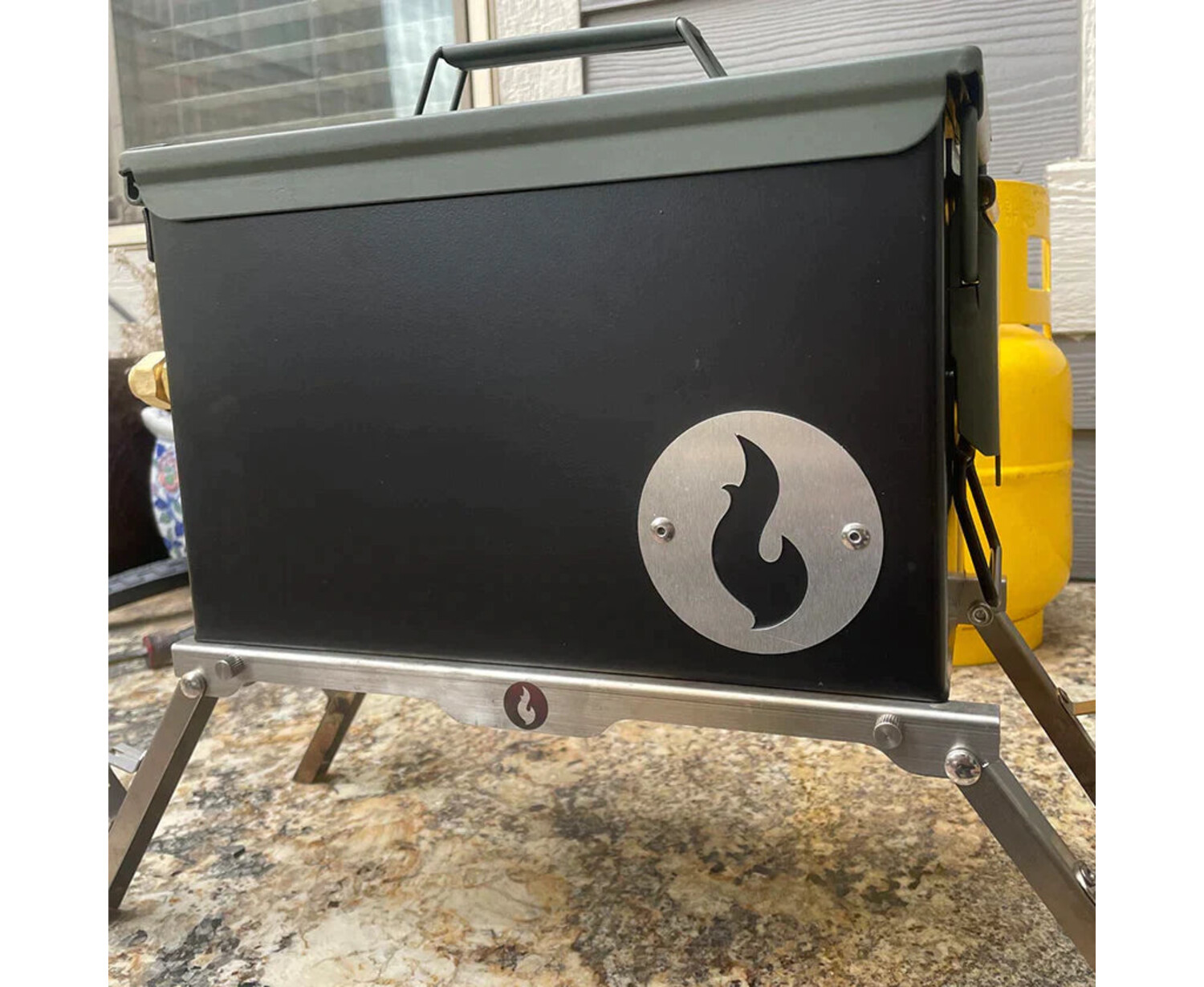 CloseThis handy 2 in 1 outdoor cooking solution merges a tabletop gas fire pit LavaBox and an Over/Under grill thingy.