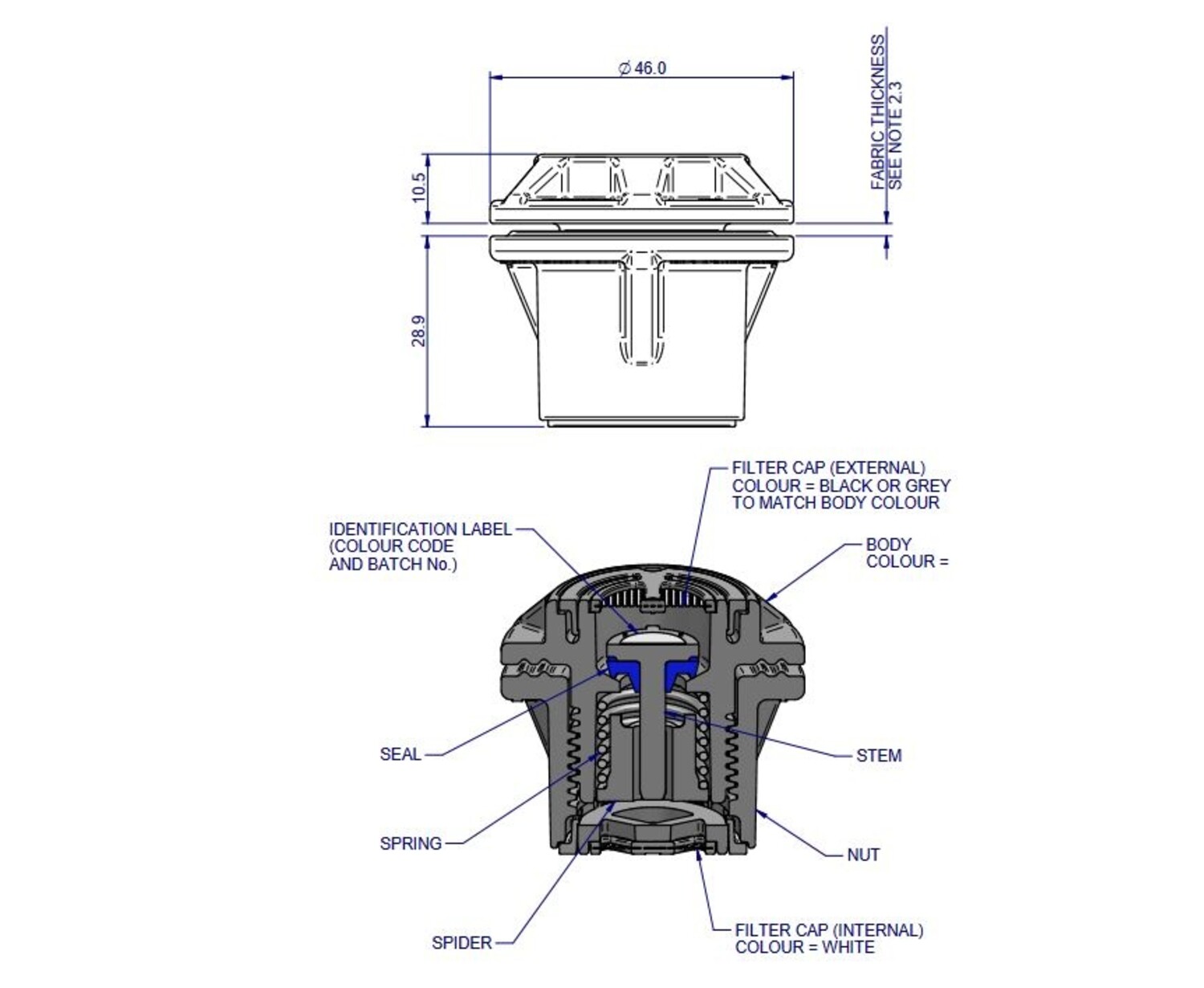 - Impact and UV resistant acetal body, stainless steel spring and silicon seal to ensure a long life in tough conditions