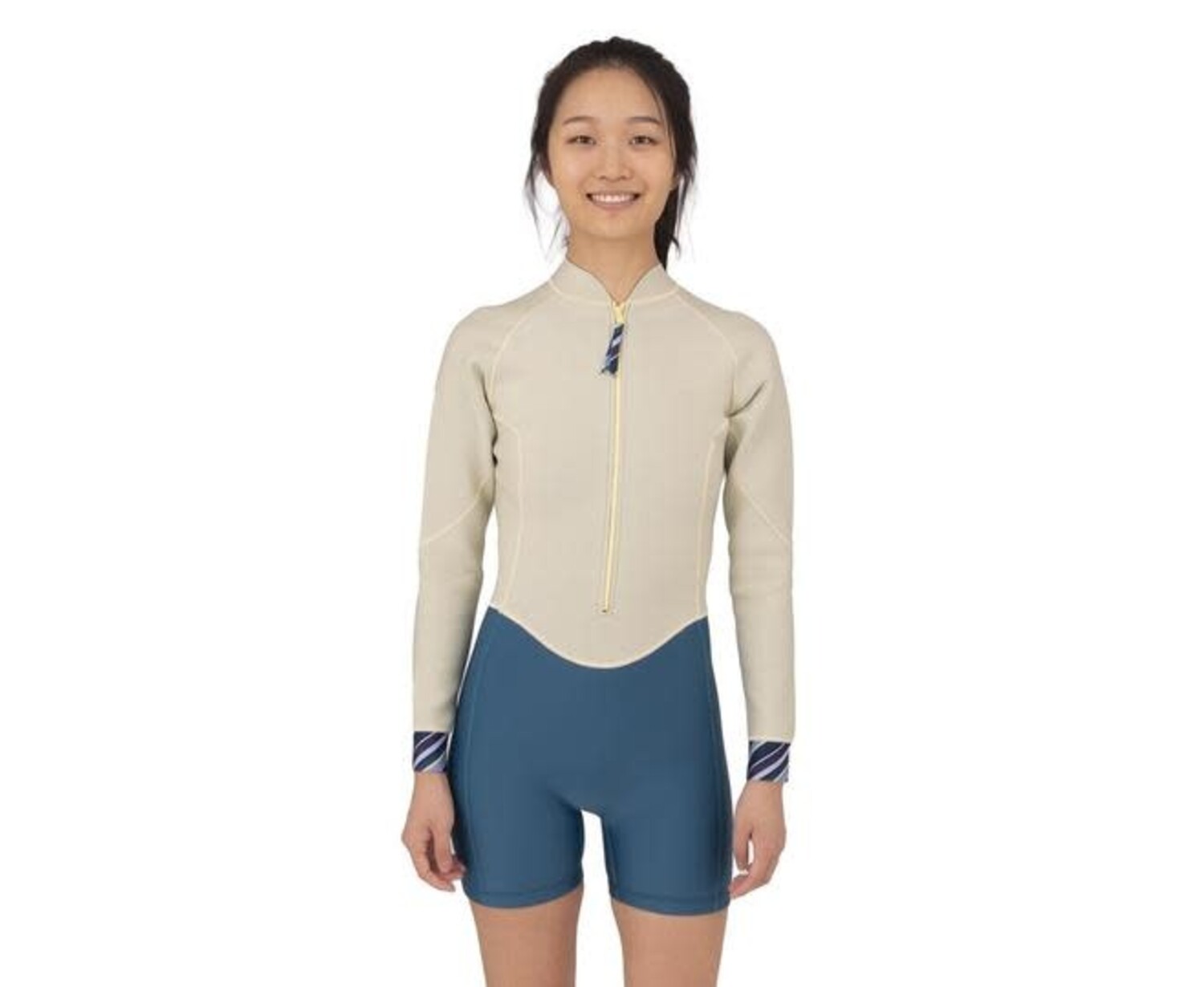A great piece for transitional seasons when the water is not quite warm enough for a swimsuit. Made from our tough yet supple 1.2 mm serenity neoprene, the Gamora spring suit boasts flexibility, comfort and durability while keeping everything in place. The Gamora has short sleeves and a boy short bottom for full coverage. It is designed with performance panels for the best active mobility with minimal bunching and pulling.