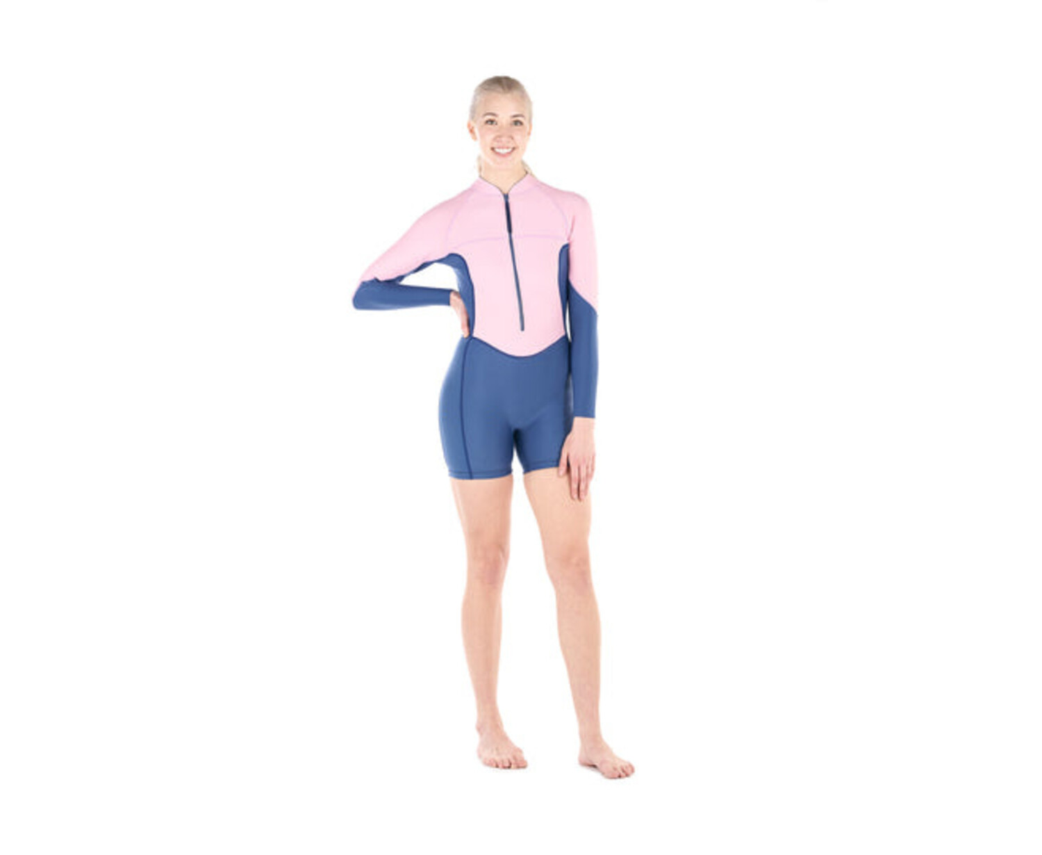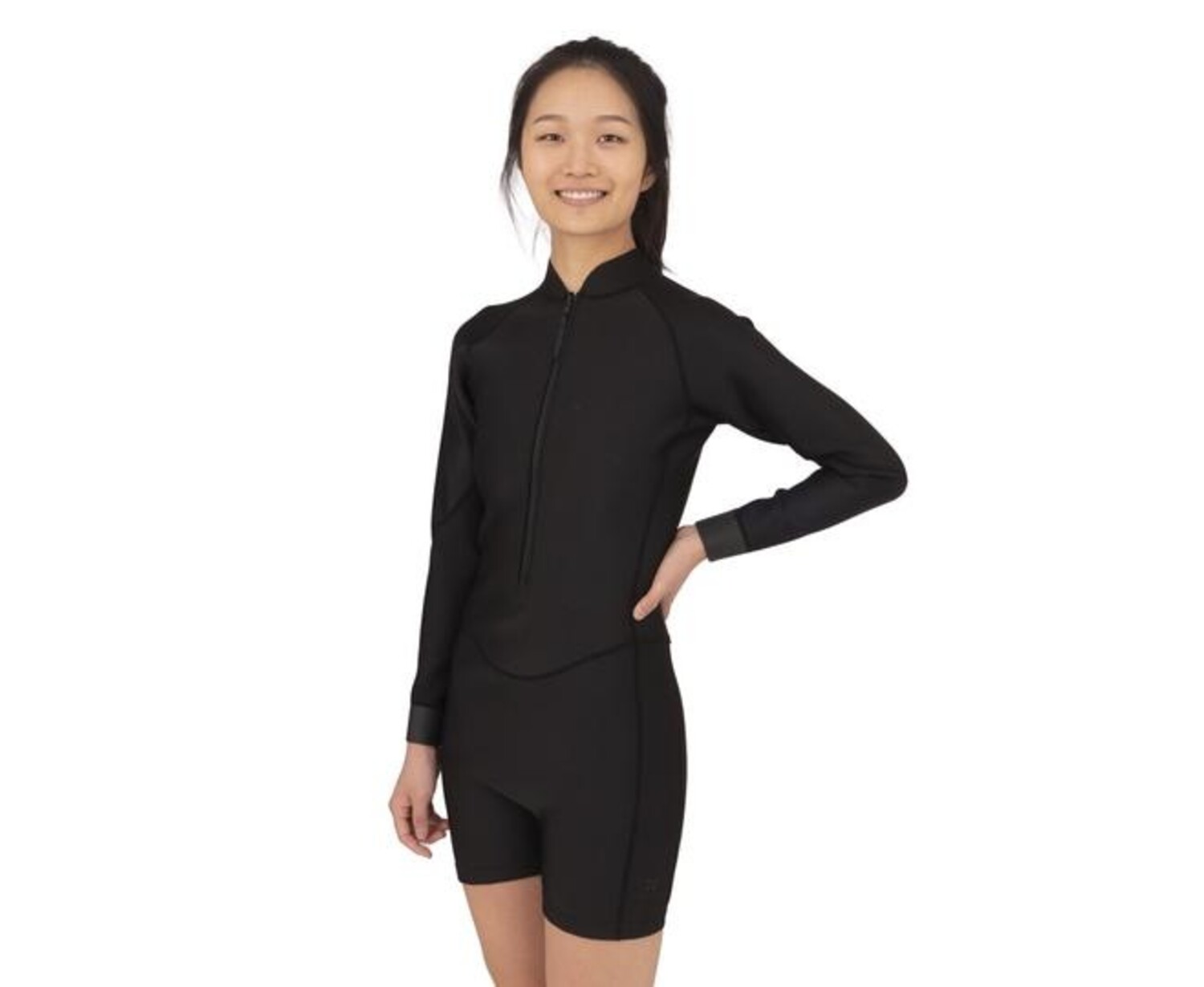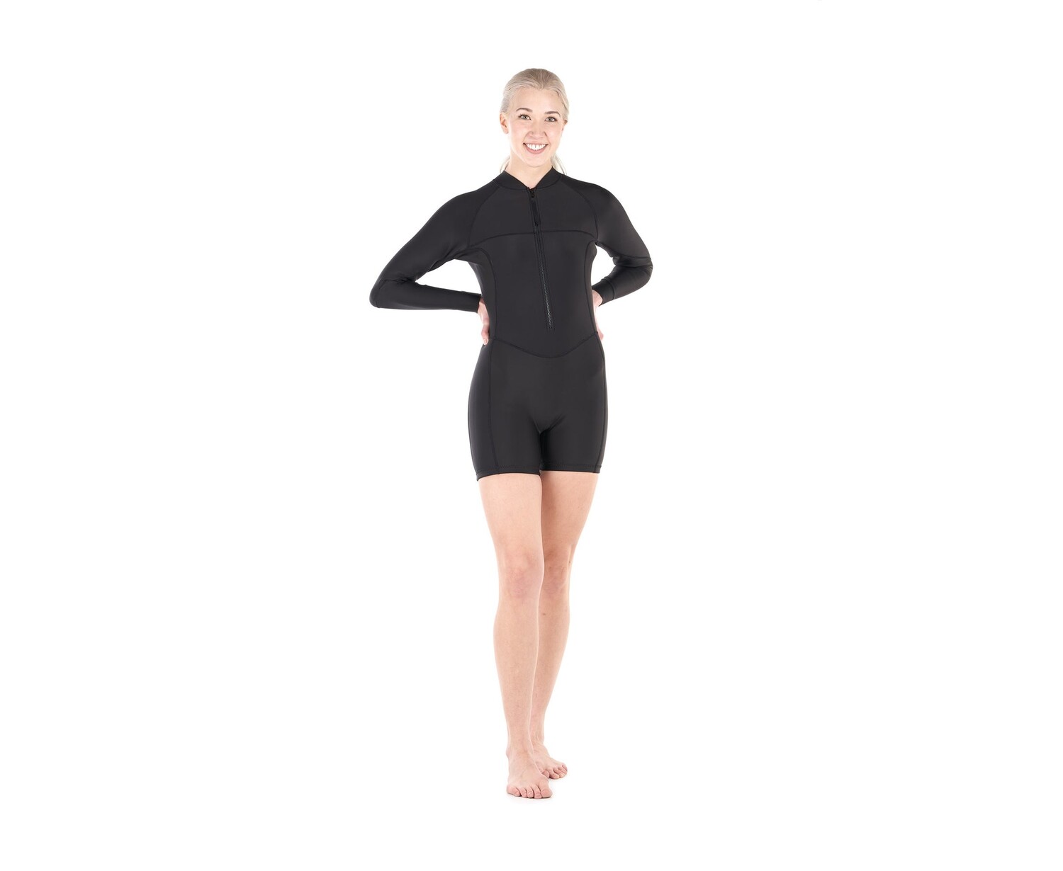 - Long Sleeve One Piece Swimsuit With Short Bottoms