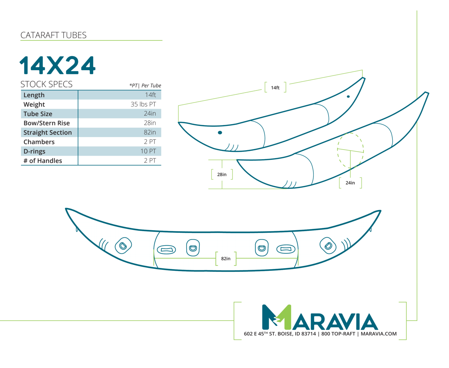 Smooth curved bow and stern profiles on this highly maneuverable cataraft cut the water more like a hard hull and gives better handling characteristics. Made of Maravia’s tough Class VI material, coated with durable urethane, and a full 10-year warranty.