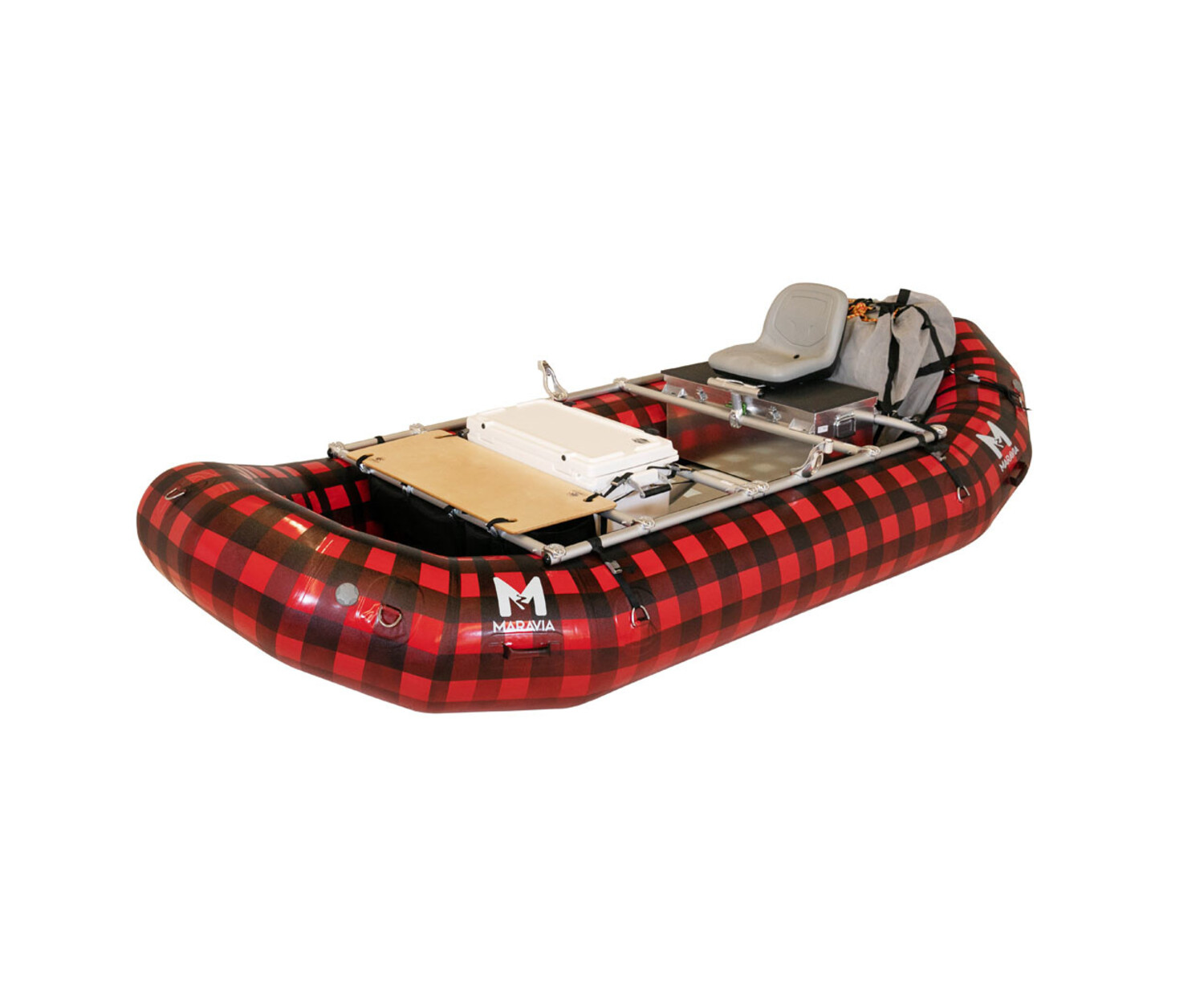 The New 13’6″ Maravia Prime is just that: “Prime for rowing, fishing, multi-day expeditions and paddling all water levels.” Larger than its Scout cohort, the Prime will hold up to a 38” box and 110 Yeti Cooler. The 76” straight section can accommodate a 4-bay frame if you want extra bay storage or 3-bay to have more room in the bow and stern.