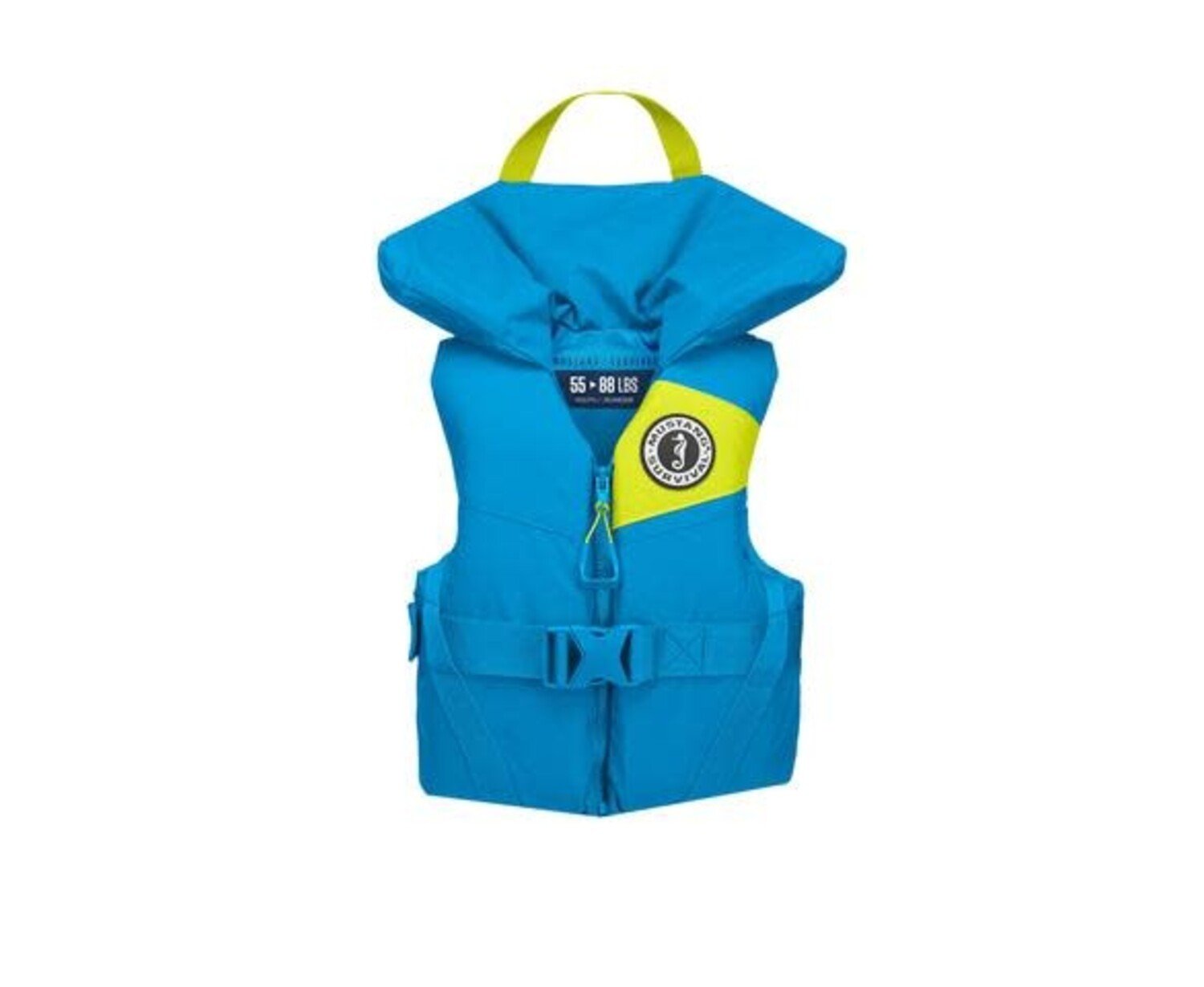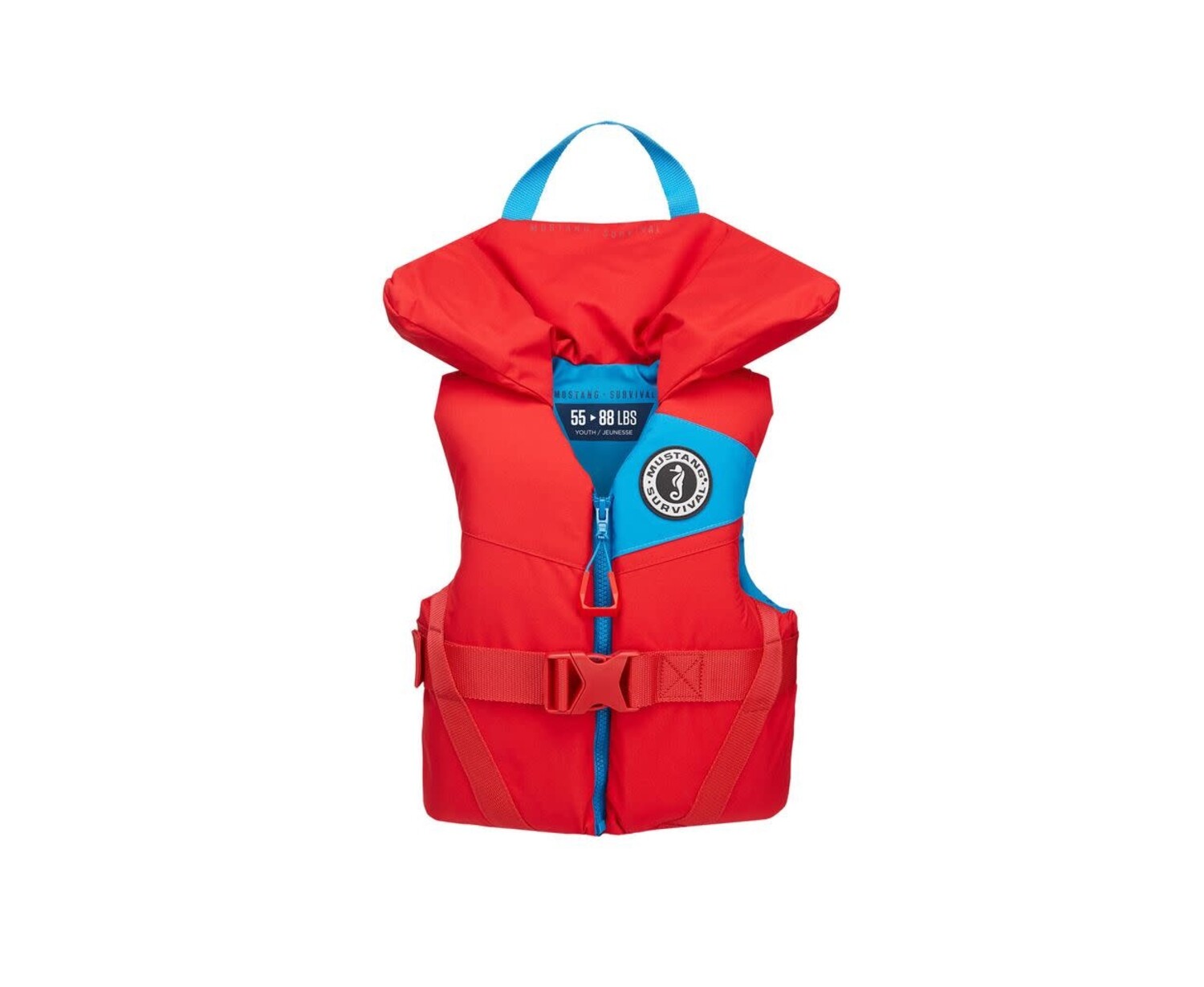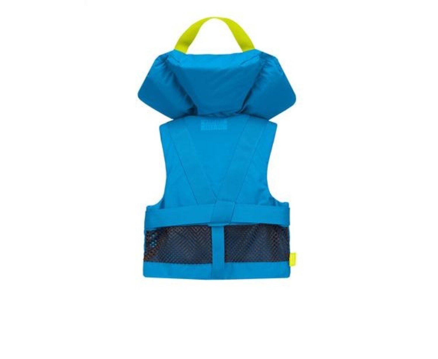 For youth 55 - 88lbs. Front zipper and adjustable waist belt ensure the vest doesn’t pop up if they pop in. Never think twice about getting them out of the water with the easy access grab handle on the head pillow. Engineered and designed for comfort and safety: ultra-soft fabric, vented mesh back, and beveled foam. Head pillow cradles head, keeps mouth out of the water and prevents rolling. Harmonized across borders: Transport Canada & US Coast Guard Approved.