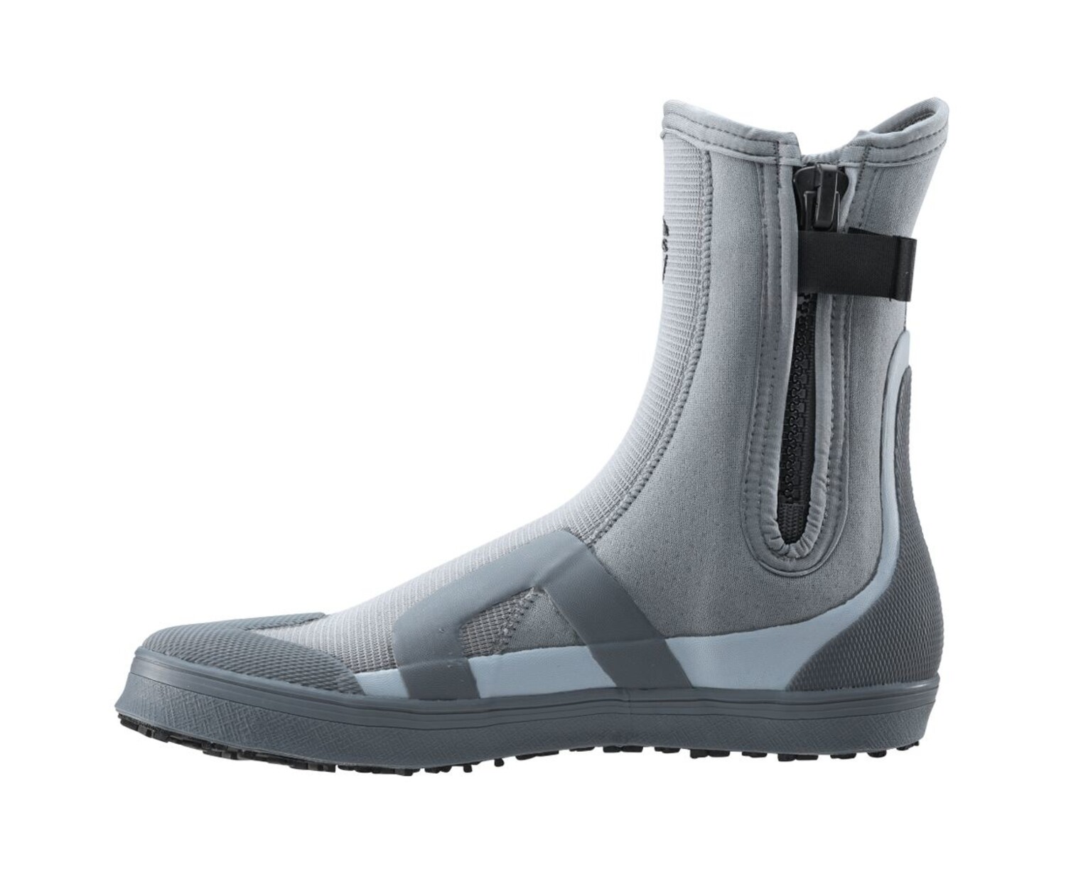- Gusset-backed side-entry zipper makes the Backwater easy to slip on, whether you're barefoot or wearing a wetsock.