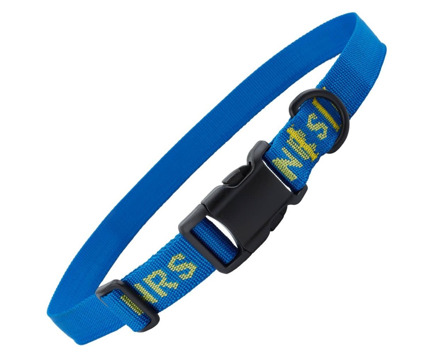 Close*ALL CLOSEOUT SALES ARE FINAL AND ARE NOT ELIGIBLE FOR RETURN OR EXCHANGE. NRS Strap use #372, now it's official. Our Iconic Blue NRS Strap webbing makes the perfect dog collar when outfitted with an adjustable side-pinch buckle and coated aluminum ring.