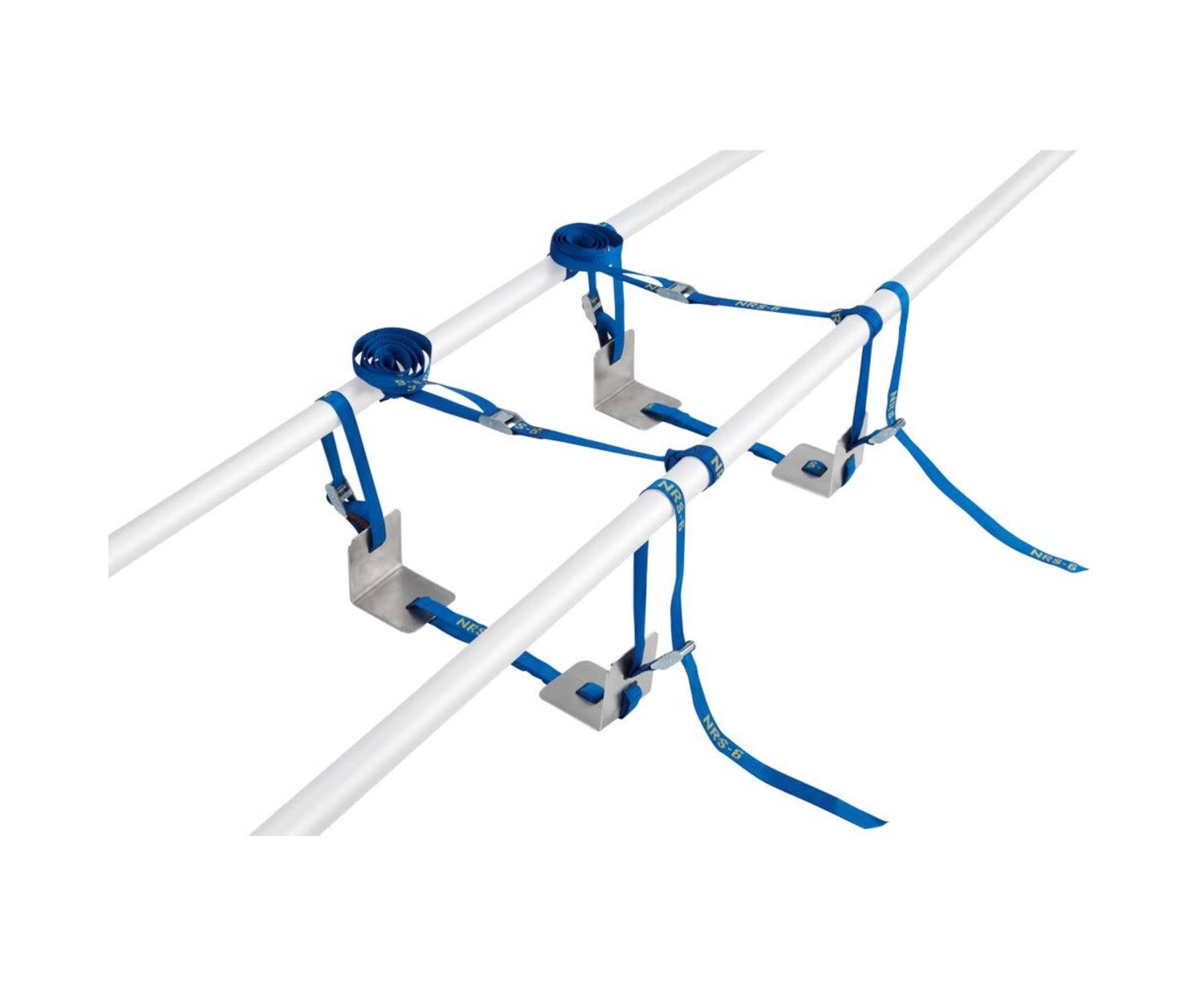 - Each piece of the mount is hung from separate 1" NRS HD Tie Down Straps, making the unit infinitely adjustable for height and width.