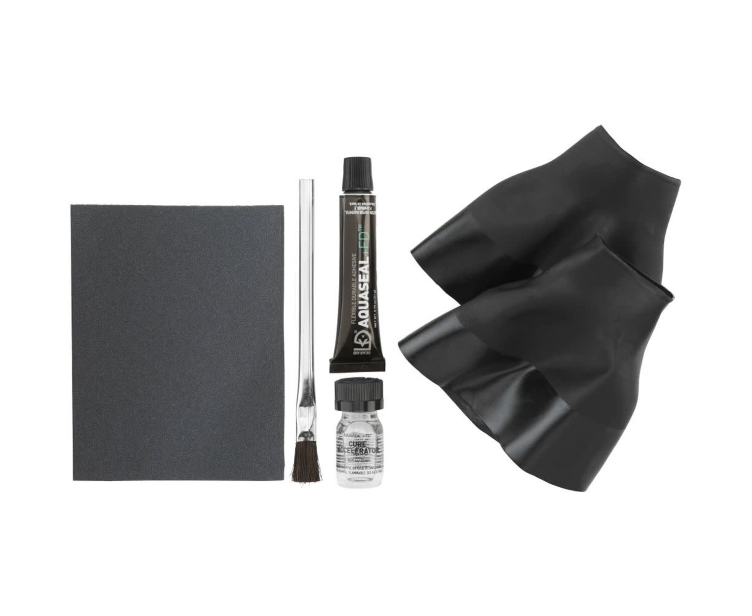 - The kit contains: two high-quality latex wrist gaskets, 3/4 oz. Aquaseal® Adhesive, 1/2 oz Gear Aid Cleaner & Cure Accelerator, applicator brush, fine-grit sandpaper and complete instructions.