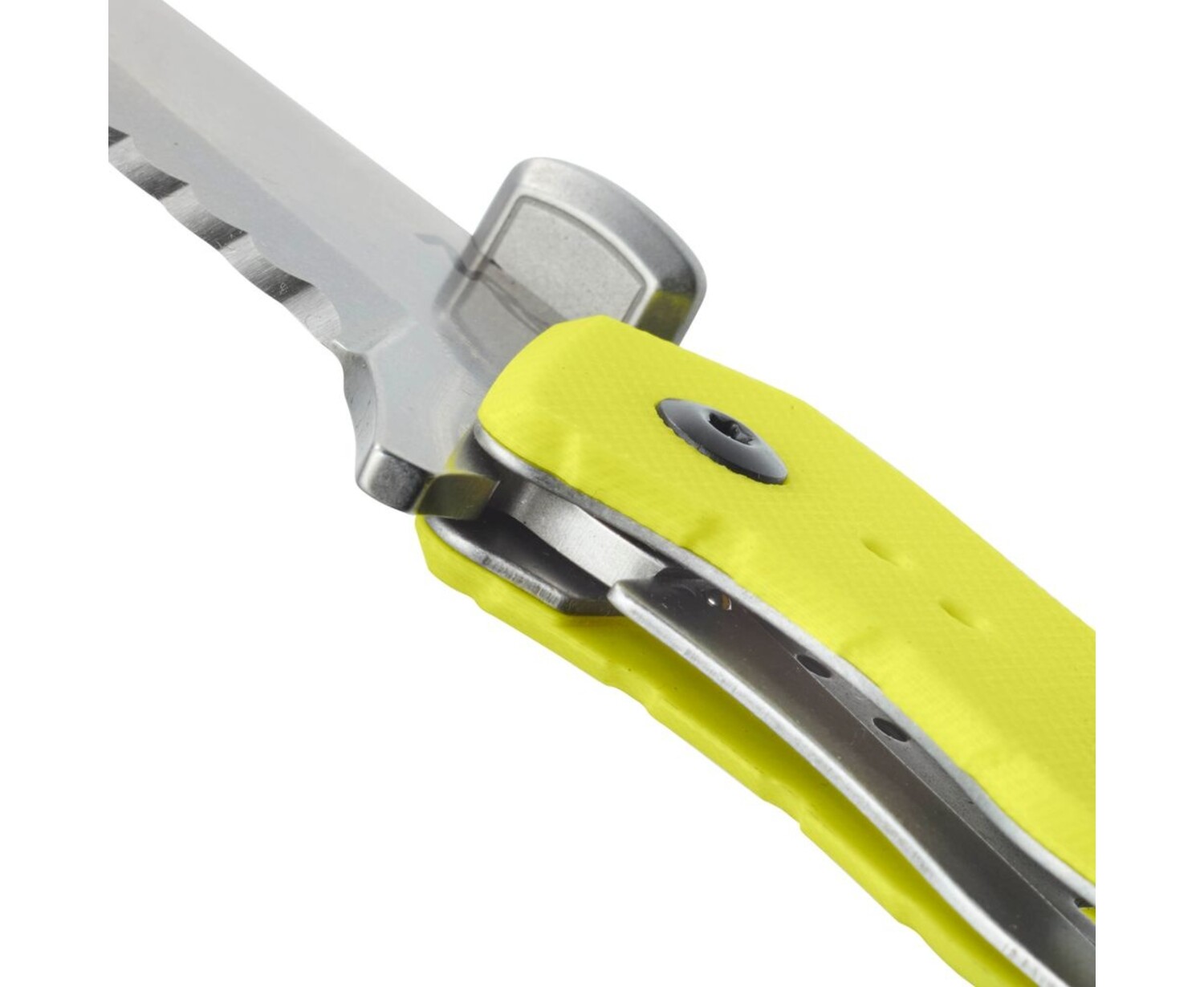 - The partially serrated edge covers all your cutting needs. The 'reverse scallop' serrations facilitate severing tough fibers.