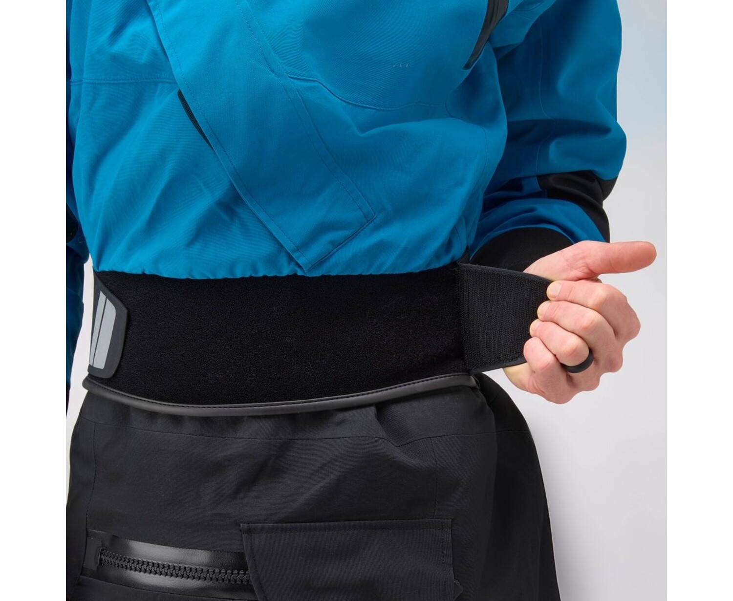 - 5" wide neoprene waist overskirt with double-pull hook-and-loop closure fits over your sprayskirt tunnel for a watertight seal.