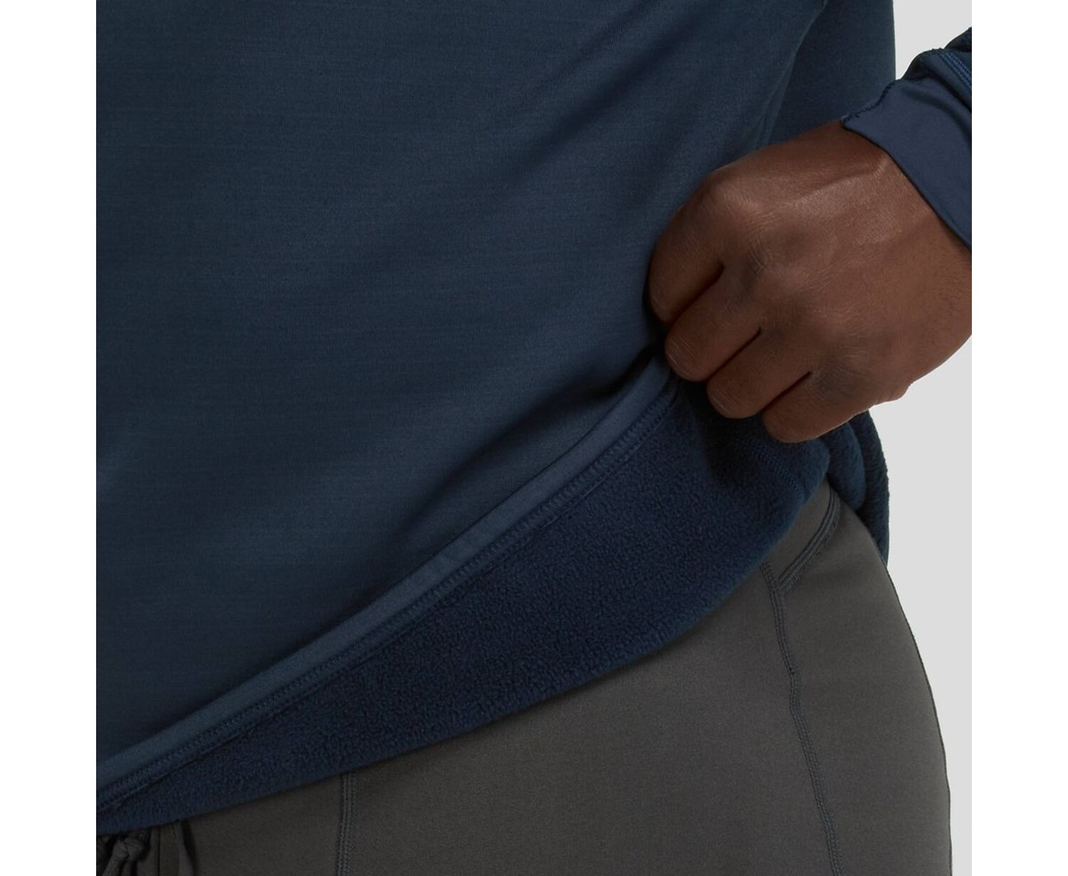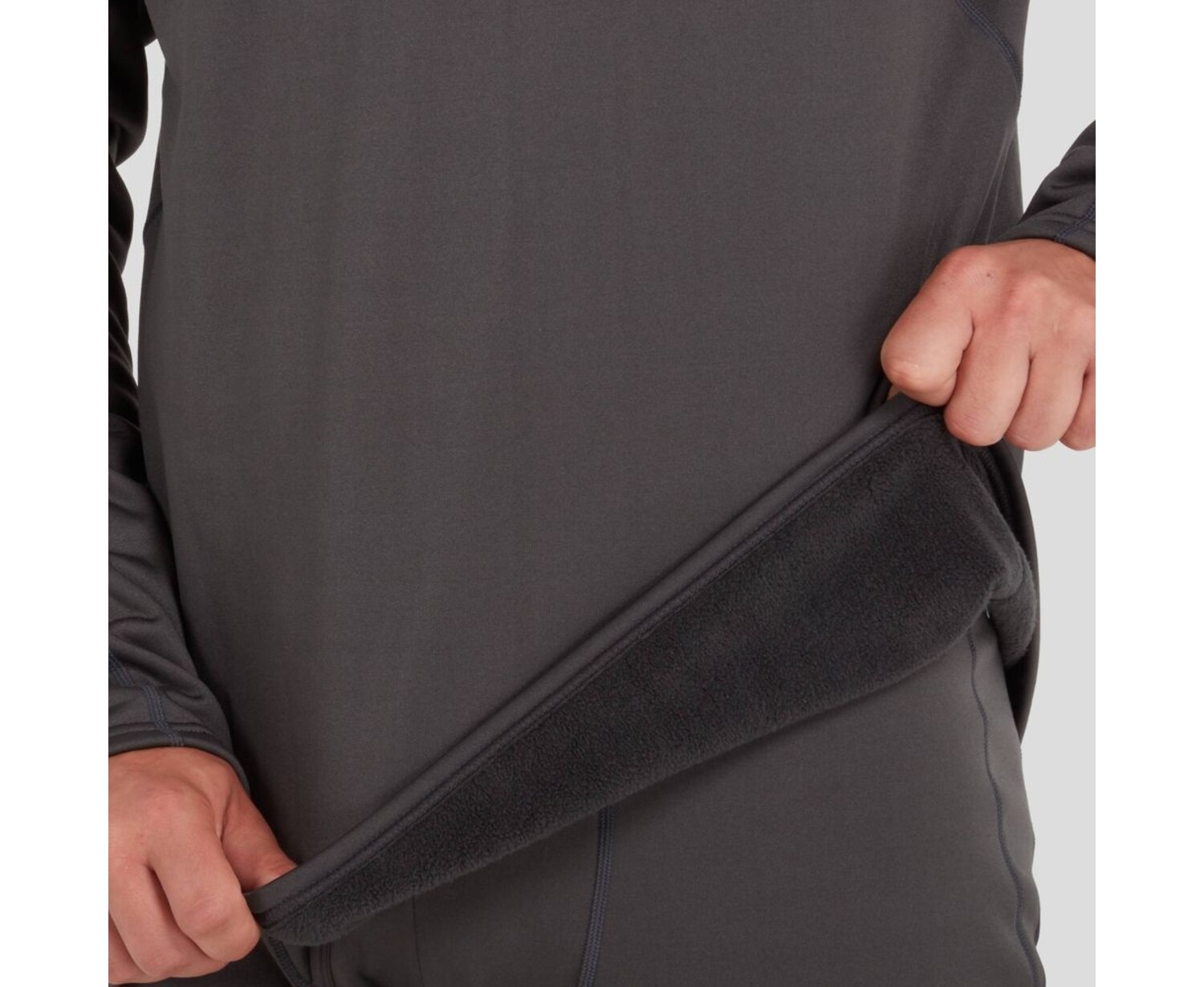 - High-stretch poly/spandex fleece delivers outstanding warmth and breathability.