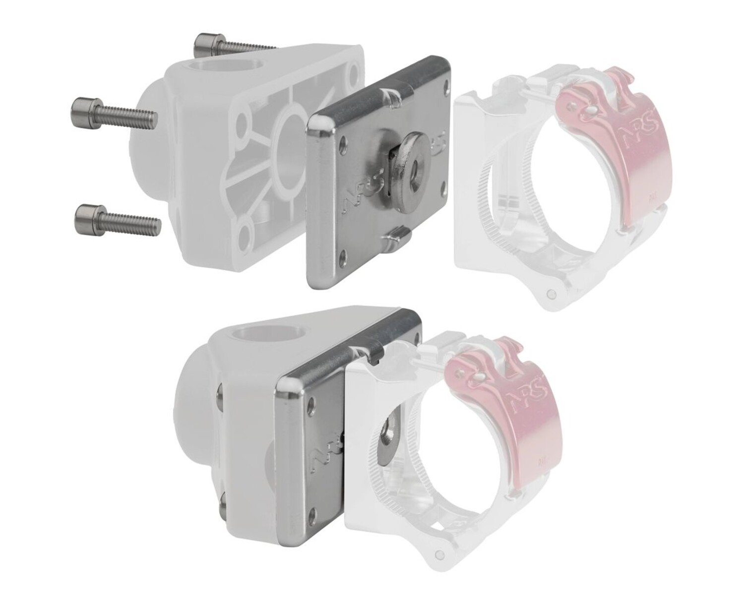 - Use the four longer bolts to secure your Scotty or RAM base to the plate.