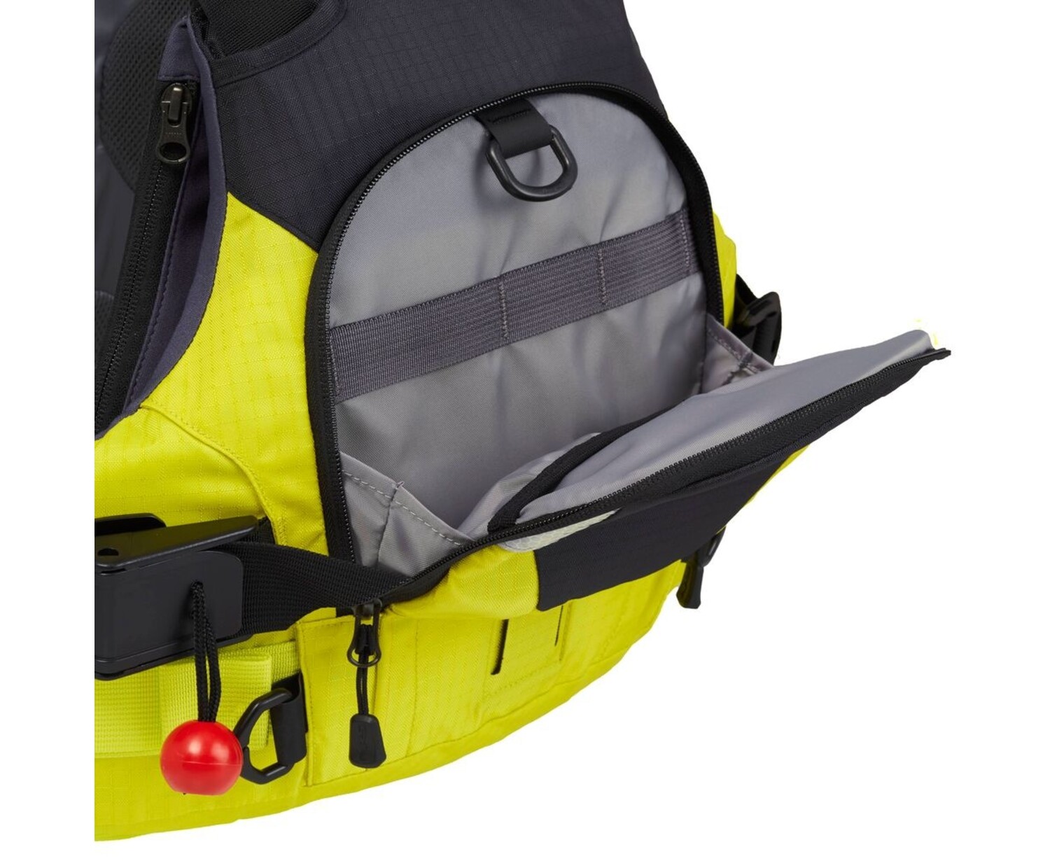 - Features two easy-release carabiner attachment points for cowtail rescue systems and attachment points for safety essentials such as whistle, knife, lights or strobe.