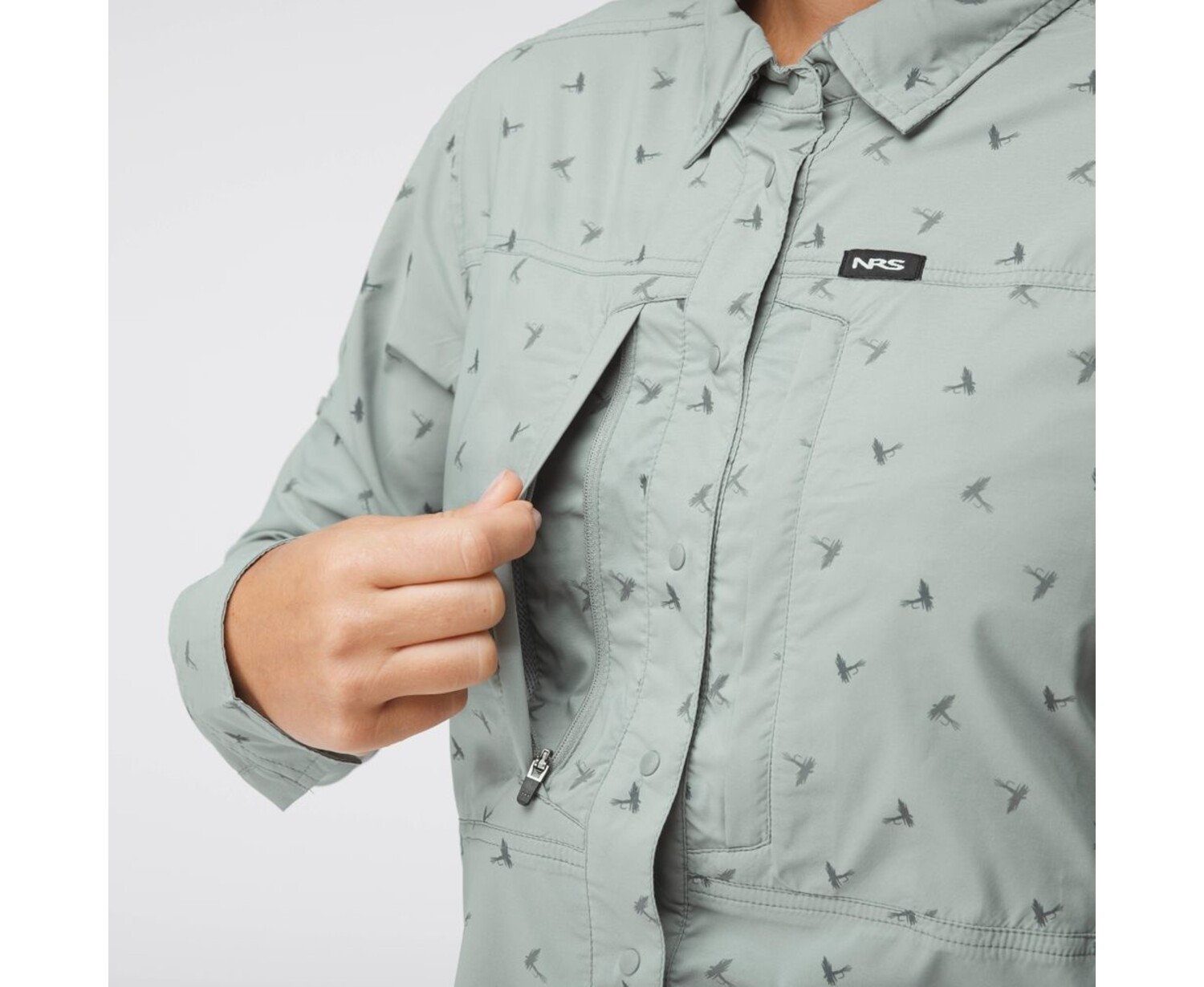 - Woven NRS label on the chest doubles as an attachment point for sunnies or lightweight tools.