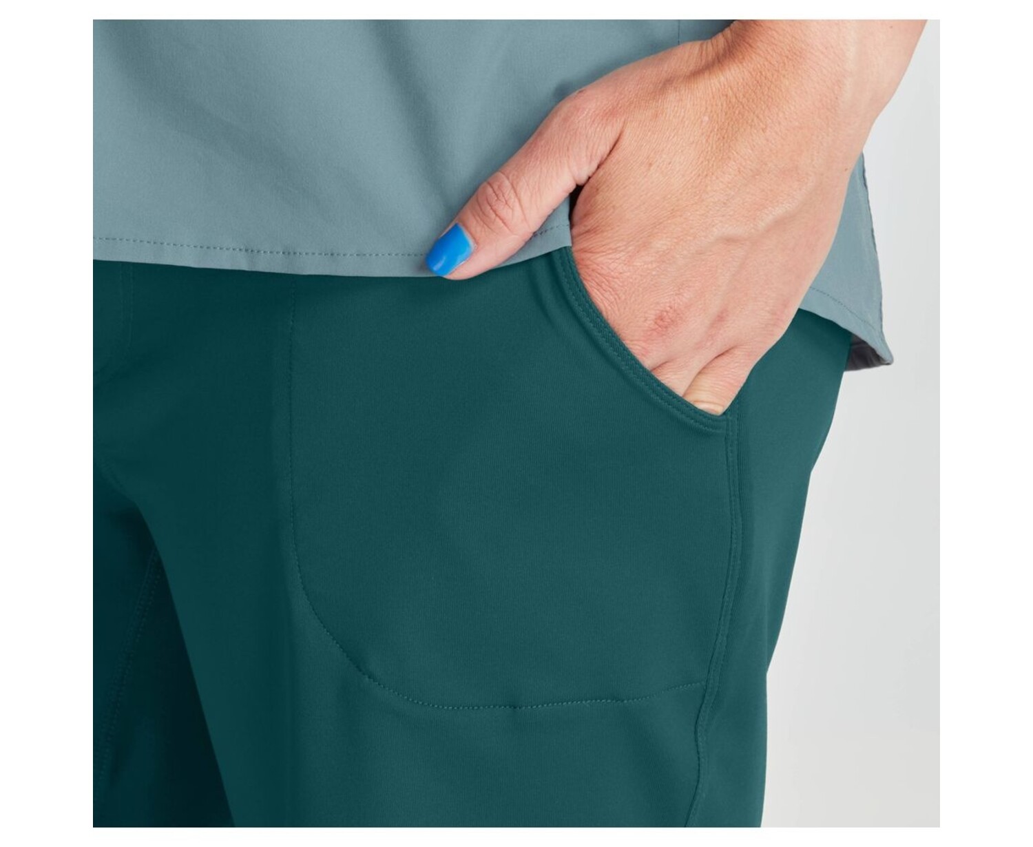 - Five-pocket design features three zippered pockets (rear, cargo and side stash) and two standard front pockets.