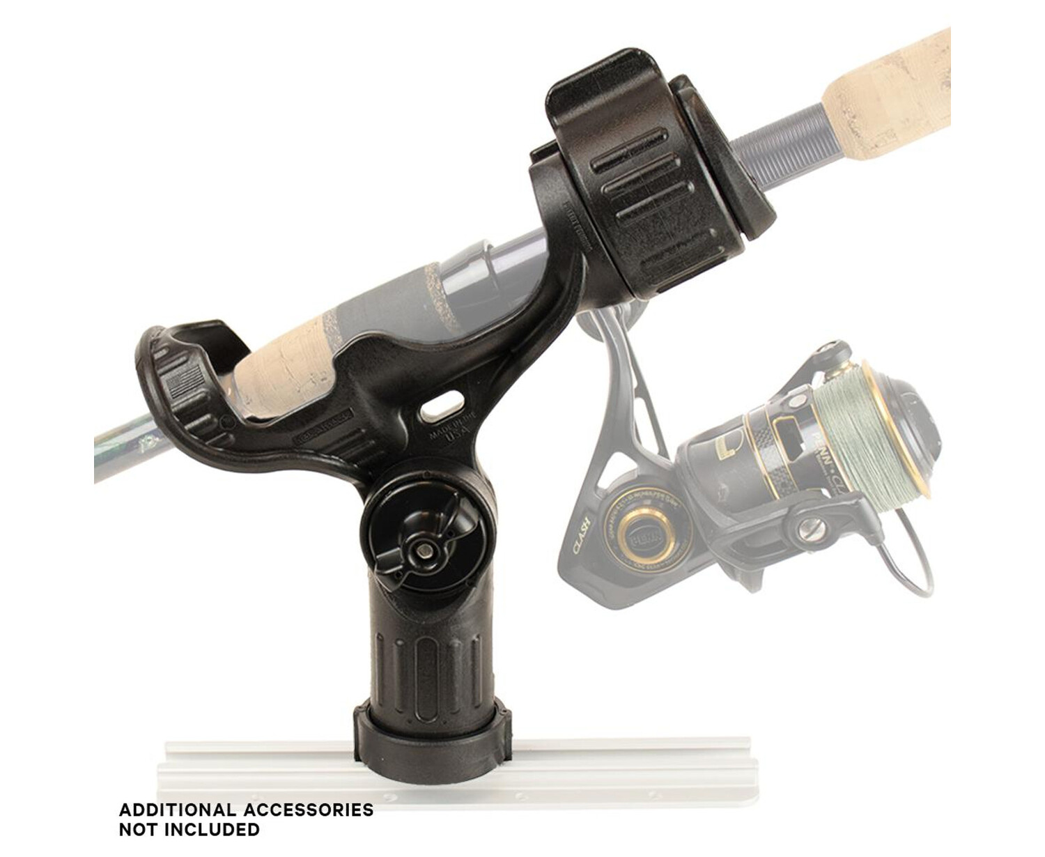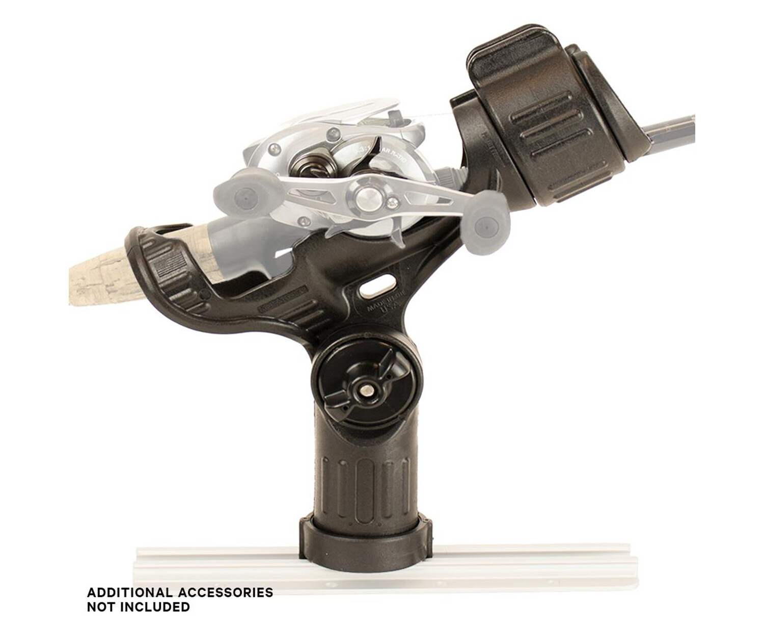 - In adjustment mode, the mount can be rotated in any direction, but cannot be removed, ensuring the rod holder is completely secure while making adjustments, even if a fish hits. Let go of the lever and you back in locked mode.