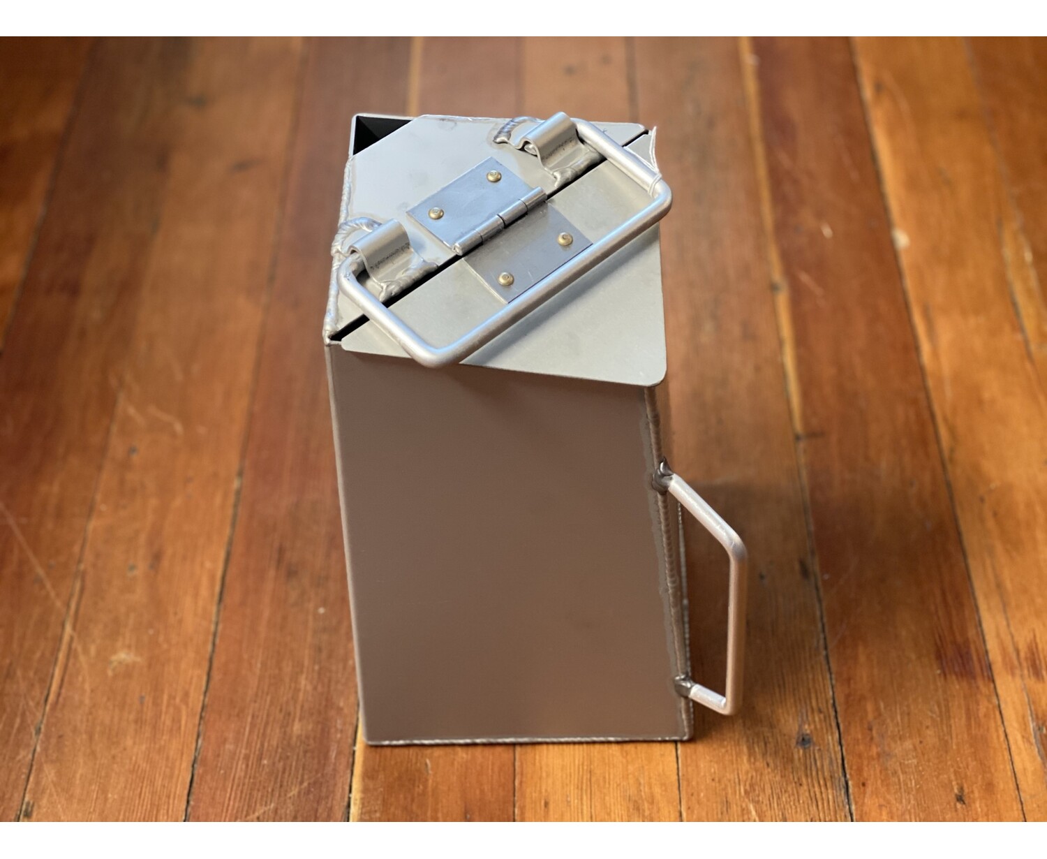 Partner Steel Coffee Pots are rugged anodized coffee pots constructed with aluminum, to keep weight down. Its smooth surface allows for easy clean-up. The square bottom and 2 handles make it stable and easy to pour. The large opening is sized for a standard ladle to dip out hot water. This pot has a hinged lid to keep flying ash out. These coffee pots are available in two sizes, 1 gallon and 2.5 gallons.