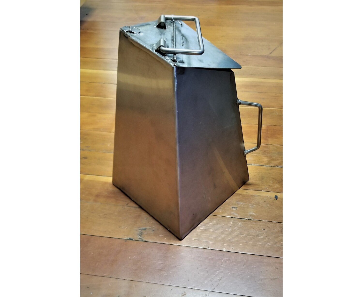 Partner Steel Stainless Steel Coffee Pots are intended to be placed directly into a campfire. The larger lid is sized so that a standard ladle may be used to dip out hot water. Smooth surface allows for easy clean-up. The square bottom and 2 handles make it stable and easy to pour. This pot has a hinged lid to keep flying ash out. These coffee pots are available in two sizes, 1 gallon and 2.5 gallons.