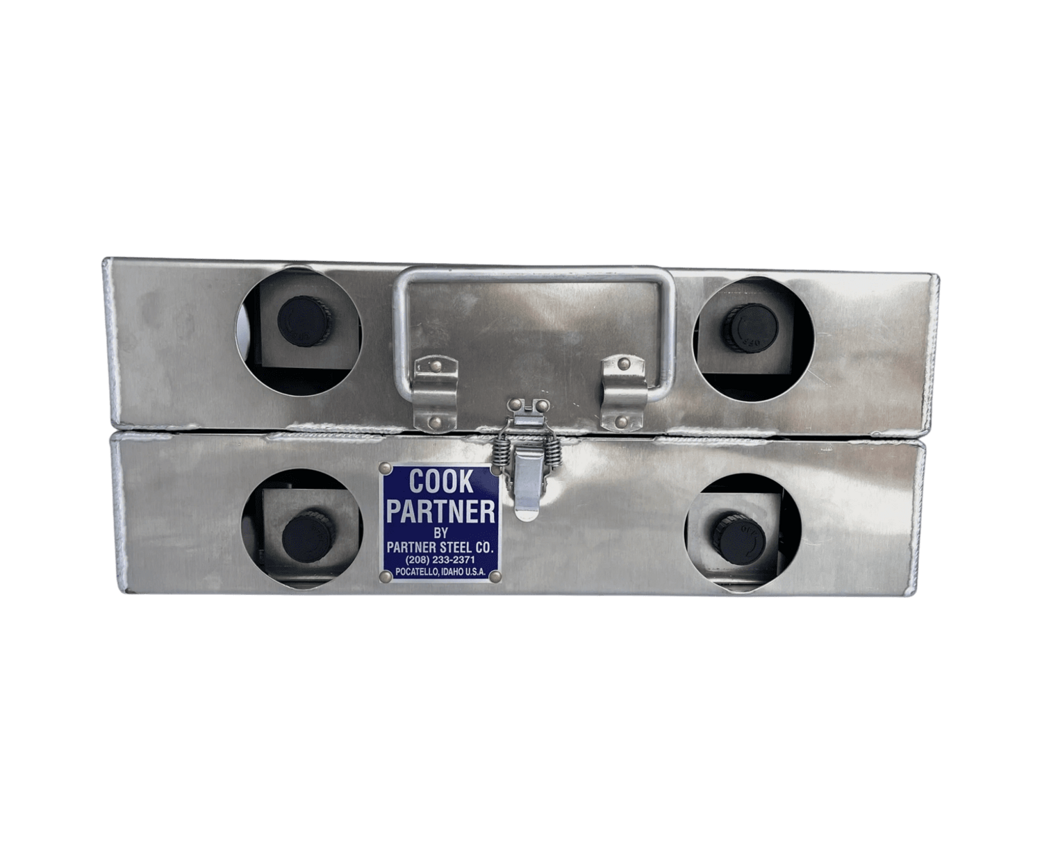 CloseDurable Partner Steel 4‑burner 18" stove with break‑apart hinge for river kitchens. Reliable heat and easy transport for multi‑day camp cooking.
