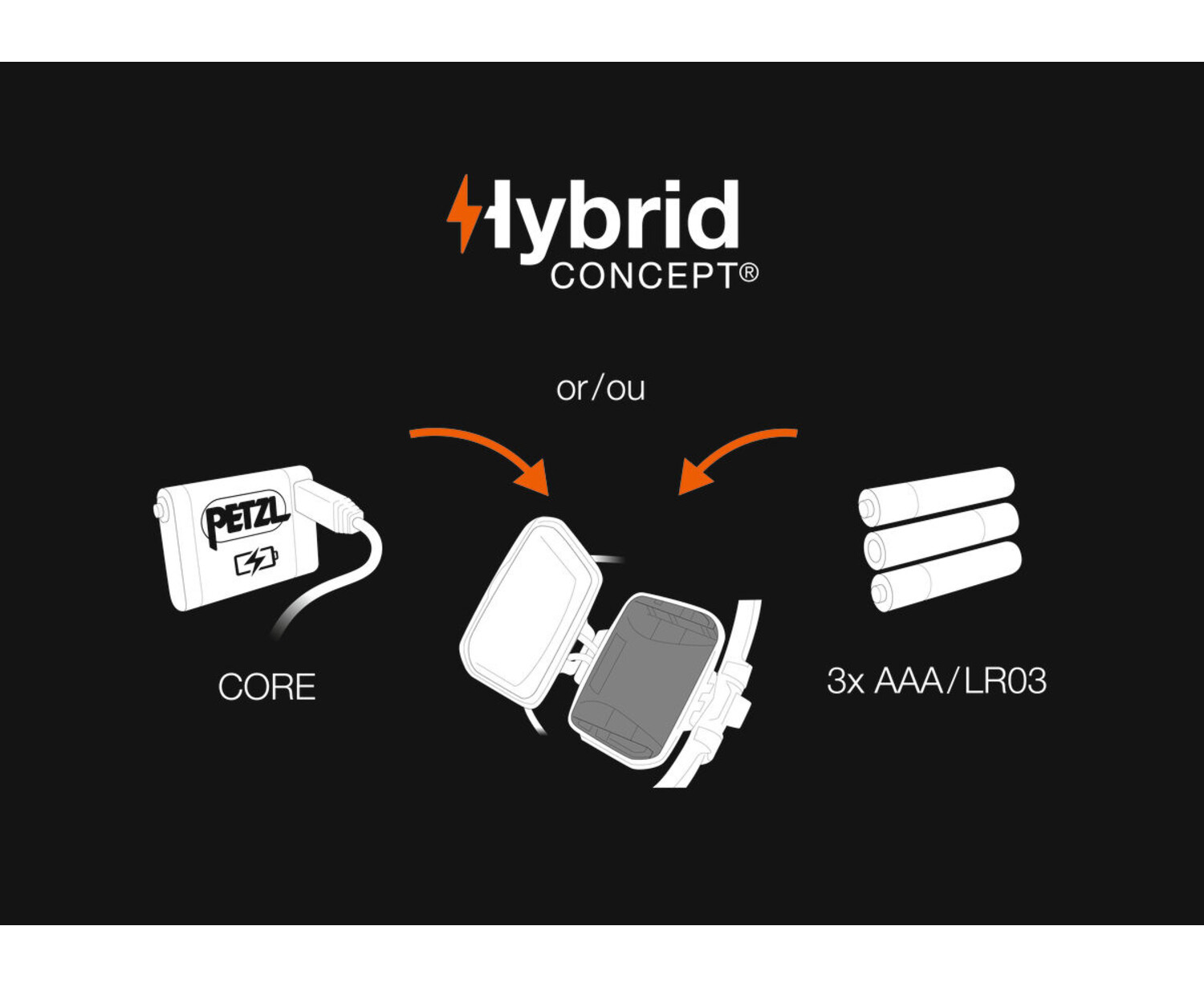 Bringing together multiple technologies! The IKO® CORE rechargeable headlamp combines multiple technologies to provide 500 lumens at a total weight of only 79 g. Featuring an AIRFIT® headband, an ultra-thin lamp body, and an energy source worn in the rear, the headlamp is balanced and comfortable enough to be imperceptible. It is versatile and can also be worn around the neck or transformed into a lantern using the storage pouch. It can fold flat to reduce bulk, making it practical for all outdoor activities. With its HYBRID CONCEPT design, IKO® CORE comes with the CORE rechargeable battery but also works with three AAA/LR03 batteries (not included).