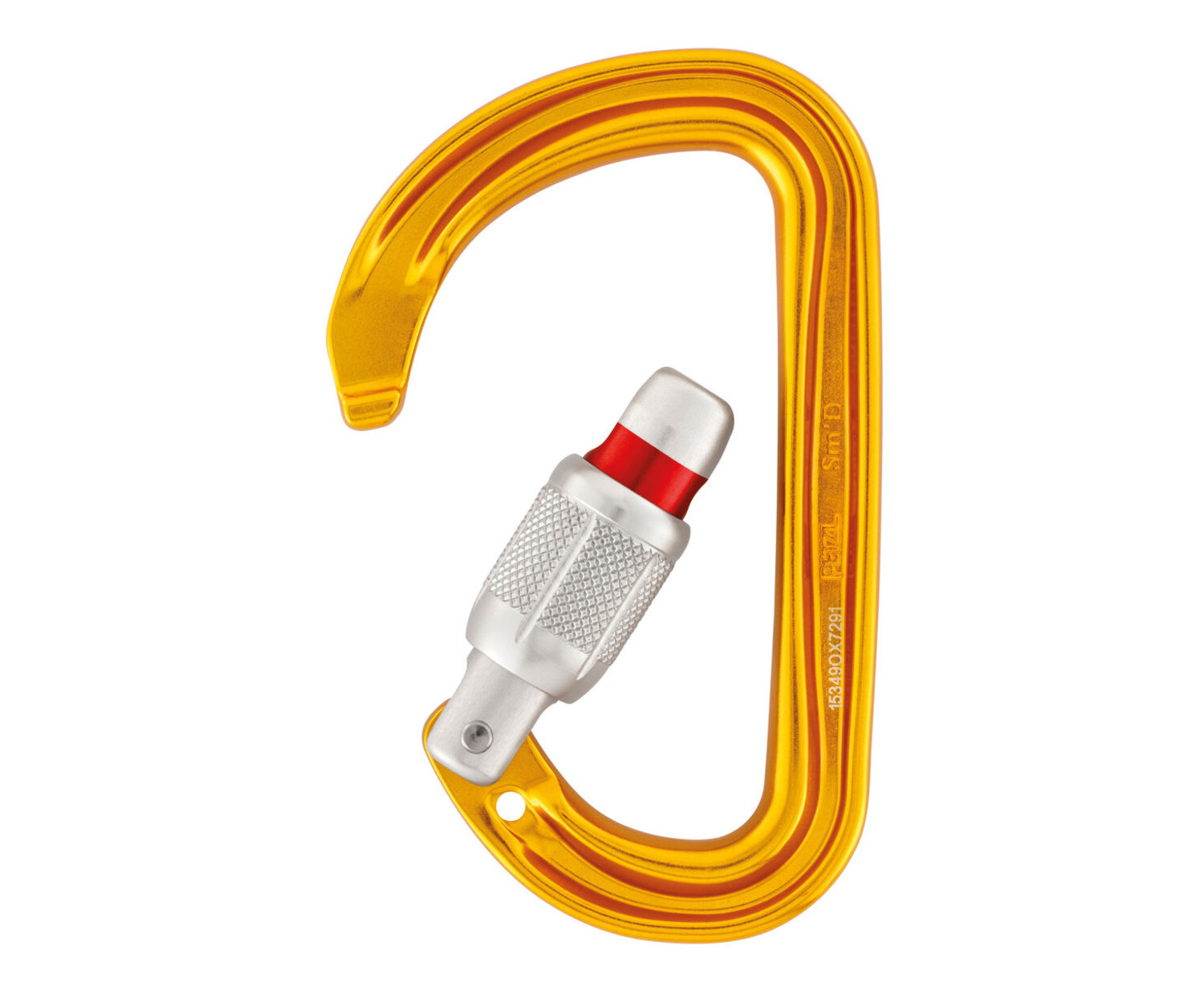 - SCREW-LOCK: easy-to-open system can be locked or not according to need. The red indicator provides a visual warning when the carabiner is unlocked. This system is ideal for harsh environments where contaminants (mud, ice) could cause an automatic locking system to jam