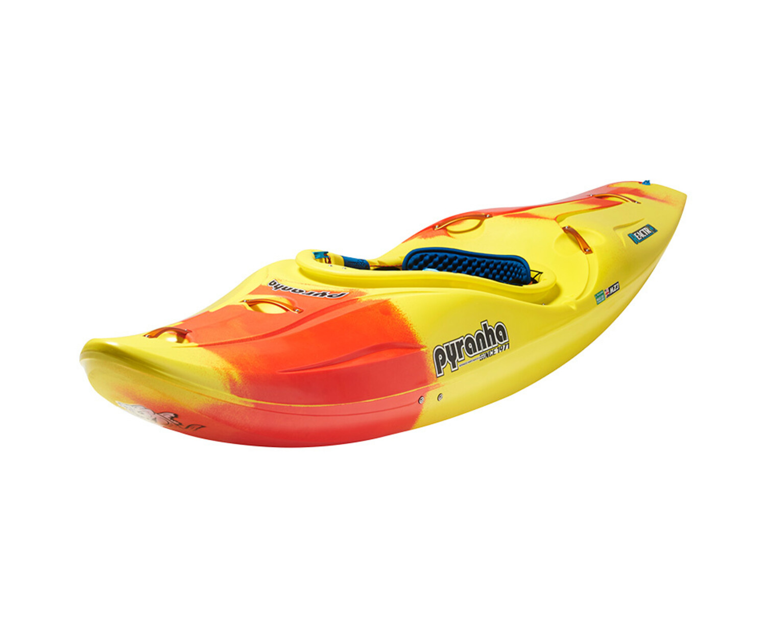 In the design of the ReactR, Pyranha have spent significant time developing an entirely new style of hull, with a perfectly positioned pivot point and two planing surfaces, one in front and another behind, which the paddler can switch between with ease. This means the boat is stable both when landing a drop on the bow and when planing out of features on the tail. You want that skip, and Pyranha have delivered.