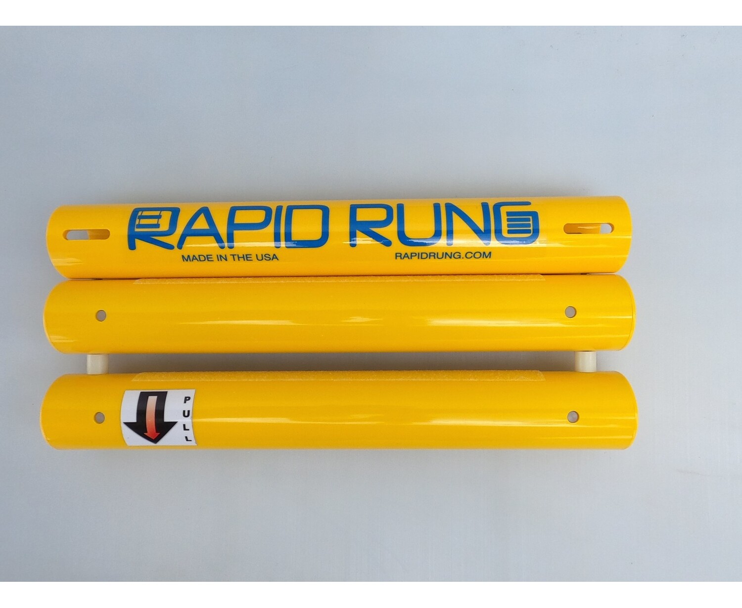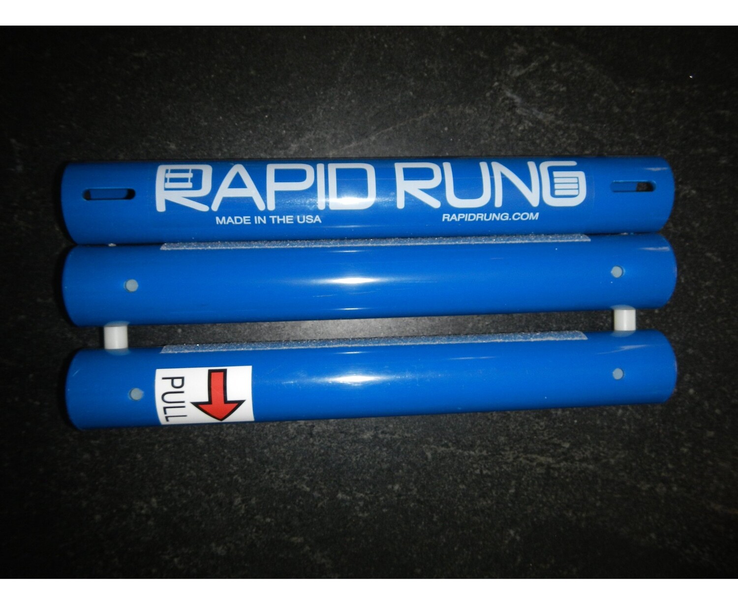 CloseThe grip tape and self retracting steps make foot entrapment unlikely and the ladder will not twist when under load. The Rapid Rung uses 1/8” 2000lb test rope that holds the heaviest of paddlers yet can be cut in an emergency. Cold water and exhaustion make it hard to get back in the boat. Strap the Rapid Rung on to your boat and never have to worry if you or your passengers will be able to climb back in after an intended, or.... unintended swim.