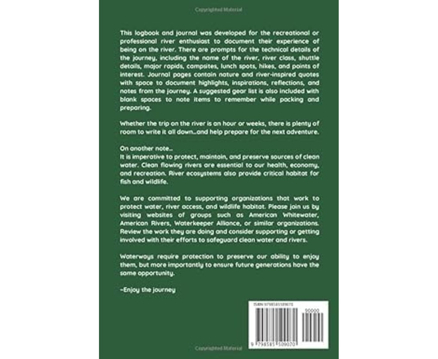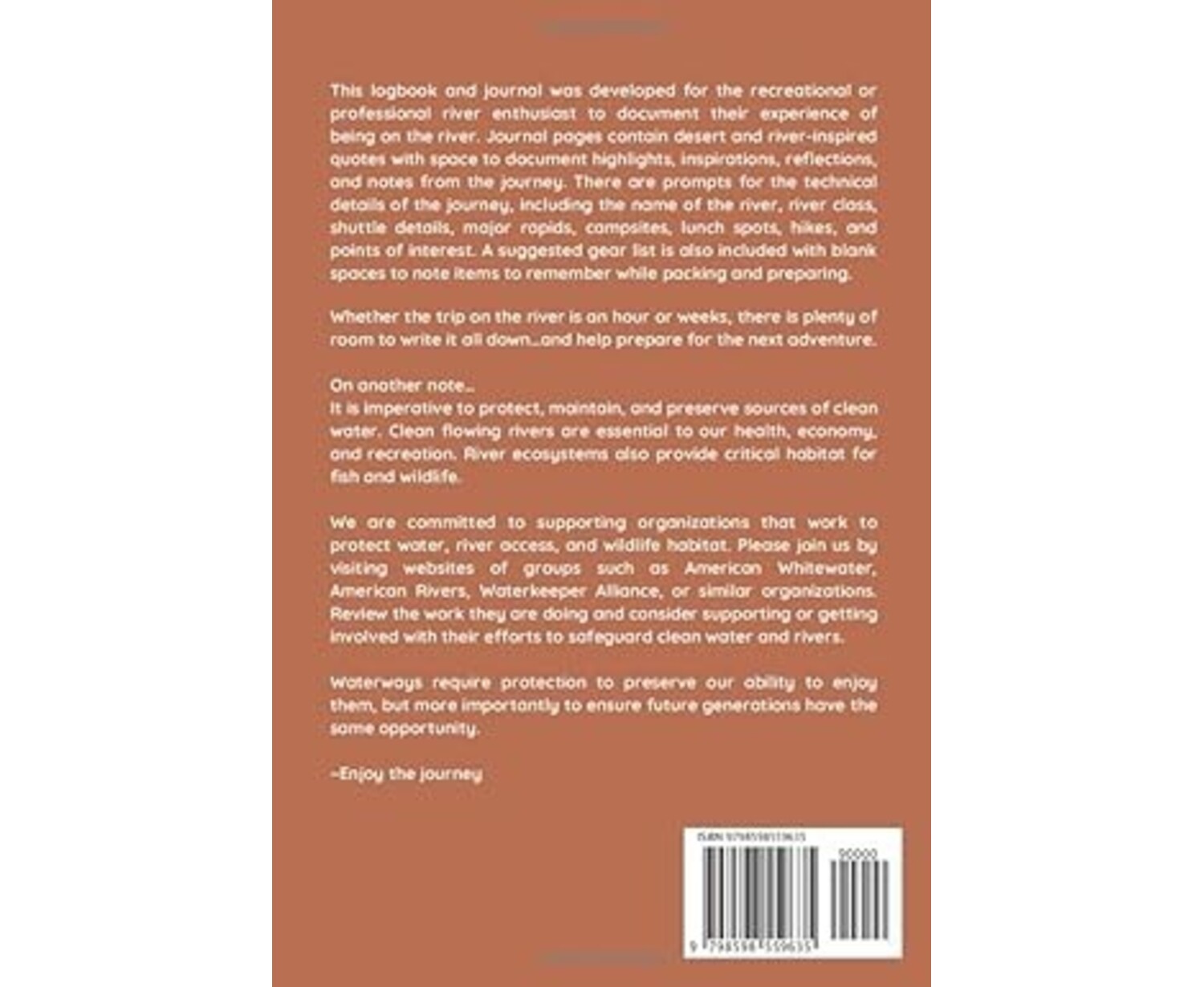 - Journal pages contain space to document highlights, inspirations, reflections, and notes from your river journey.