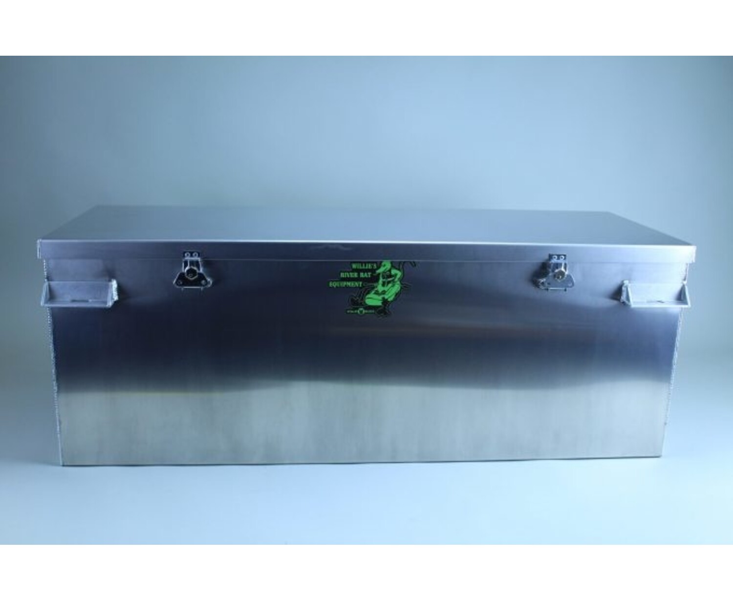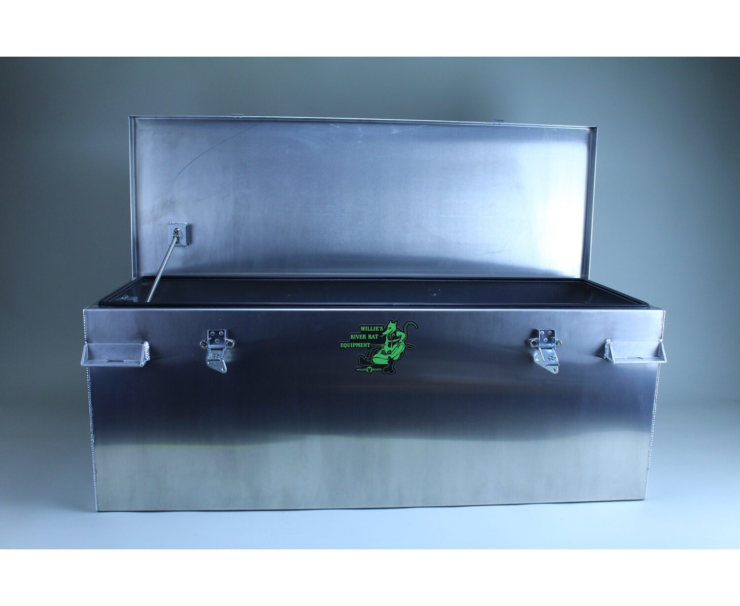 CloseRiver Rat Aluminum Dry Box Custom Features include frame rest brackets with strap slots. Bullet Hinges with Stainless Pins provide life long open and close lid. “Simply the Best”, it’s how we do business, Willie Boats.