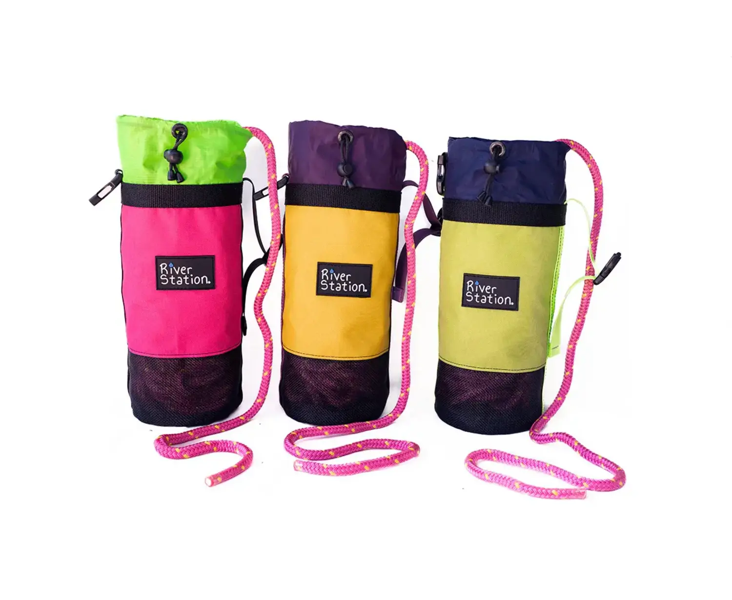 CloseThe 2025 River Station B.O.A.T. throw bag is made from highly durable materials including a nylon top. We have designed the shape of the bag to be taller and a bit slimmer to keep it really easy to throw accurately. Keep your gear protected and dry with 360 degrees of mesh. We use high quality 10mm (3/8"ish) floating rescue rope with a breaking strength of 3200lbs. The B.O.A.T bag is super easy to stuff with its large mouth and roomy body. Lots of fun colors to choose from!