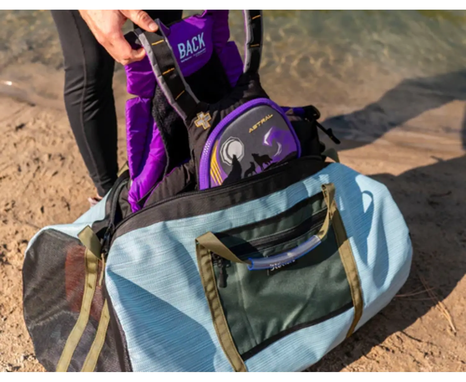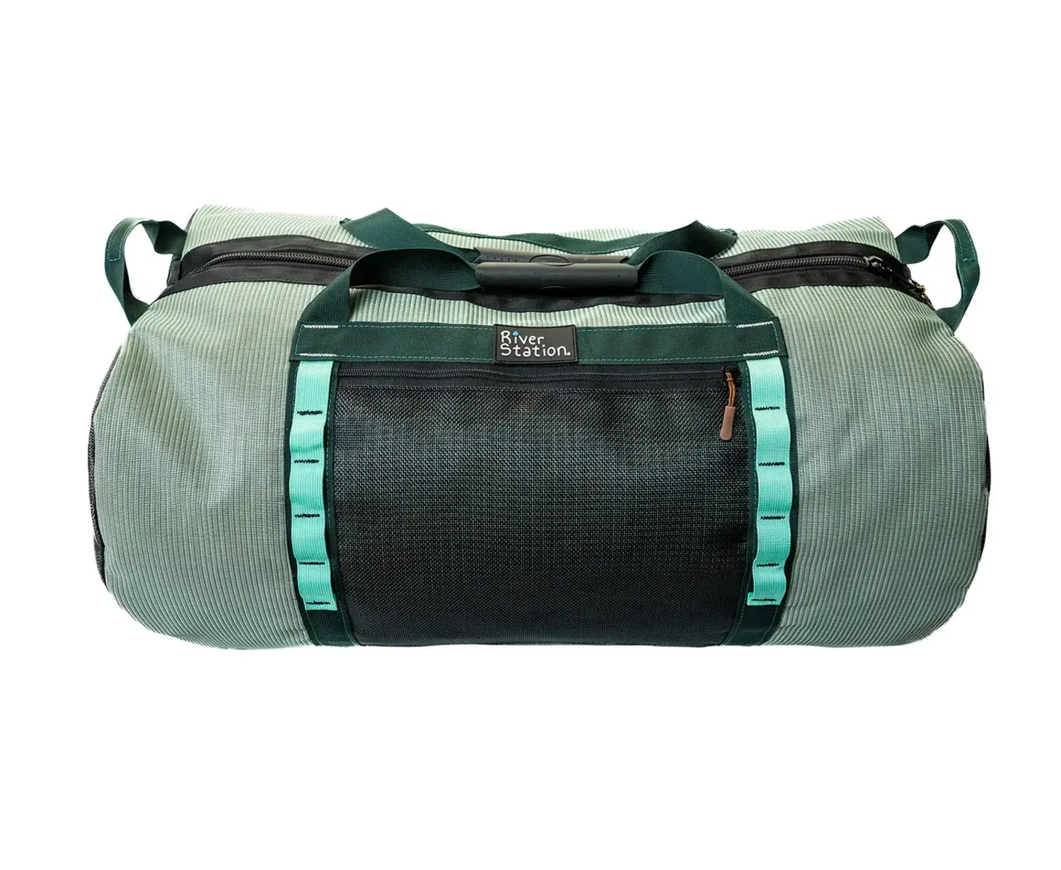 CloseThe ends are made from a tough, breathable mesh to keep air flowing. 2 stainless steel D-Rings for clipping or strapping onto a thwart. Highly trusted YKK zipper opening and zip pocket for stashing phones, river maps, and more. 2 plastic handles for easy carrying. Strap loops for attaching a shoulder strap. (shoulder strap not included). This bag is large enough to easily fit all of your boating gear: PFD, helmet, throw bag, shoes, smaller dry bags, and much more. A great gear bag for any whitewater lover!