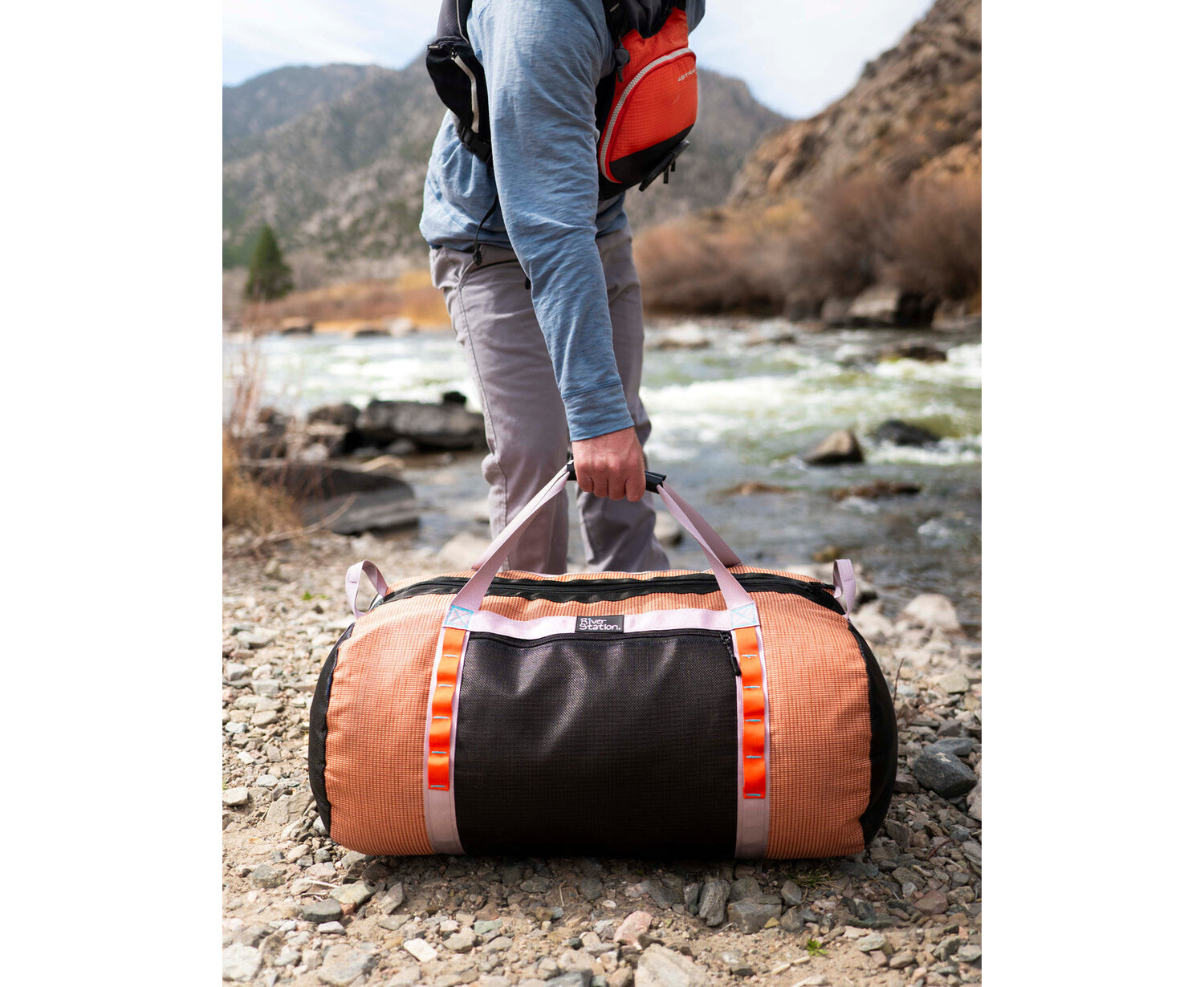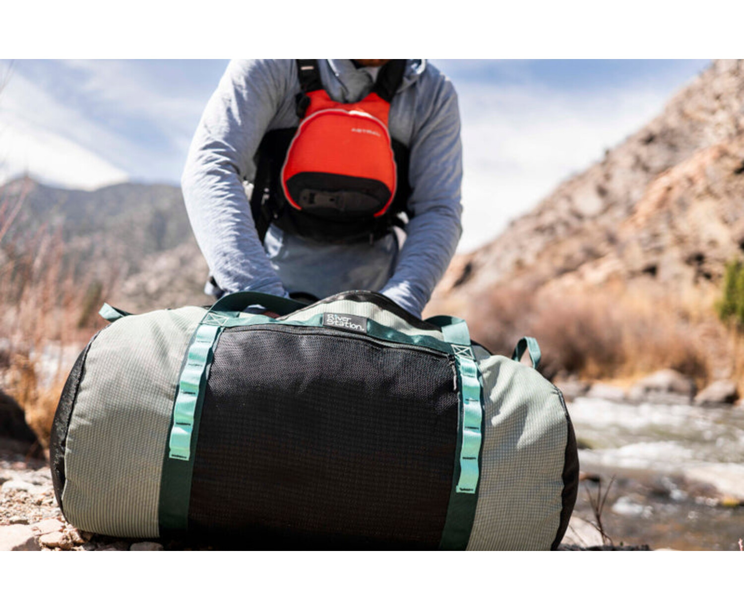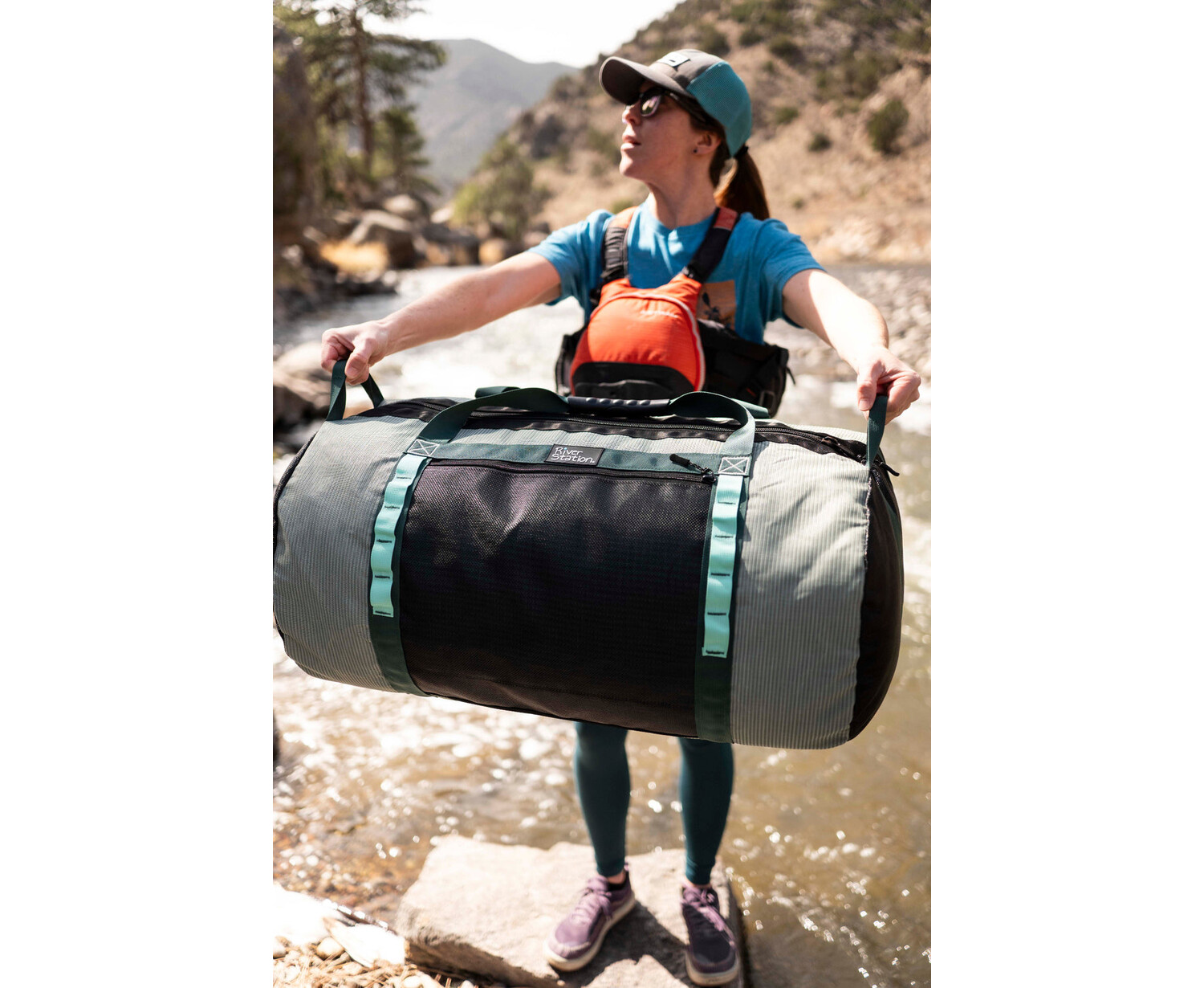 We've update the 2026 rafting mesh gear bag to be bigger and tougher. Large enough to fit the whole kit plus your dry suit. Re-enforced carry strap loops have been added to each end of the bag. You wont find a tougher gear bag out there!
