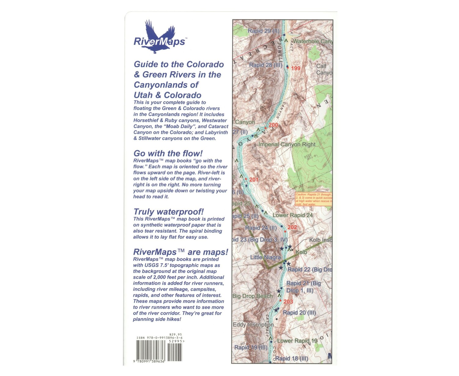 - Excellent mile by mile information on rapids, campgrounds, geological features, historical sites and reference points.