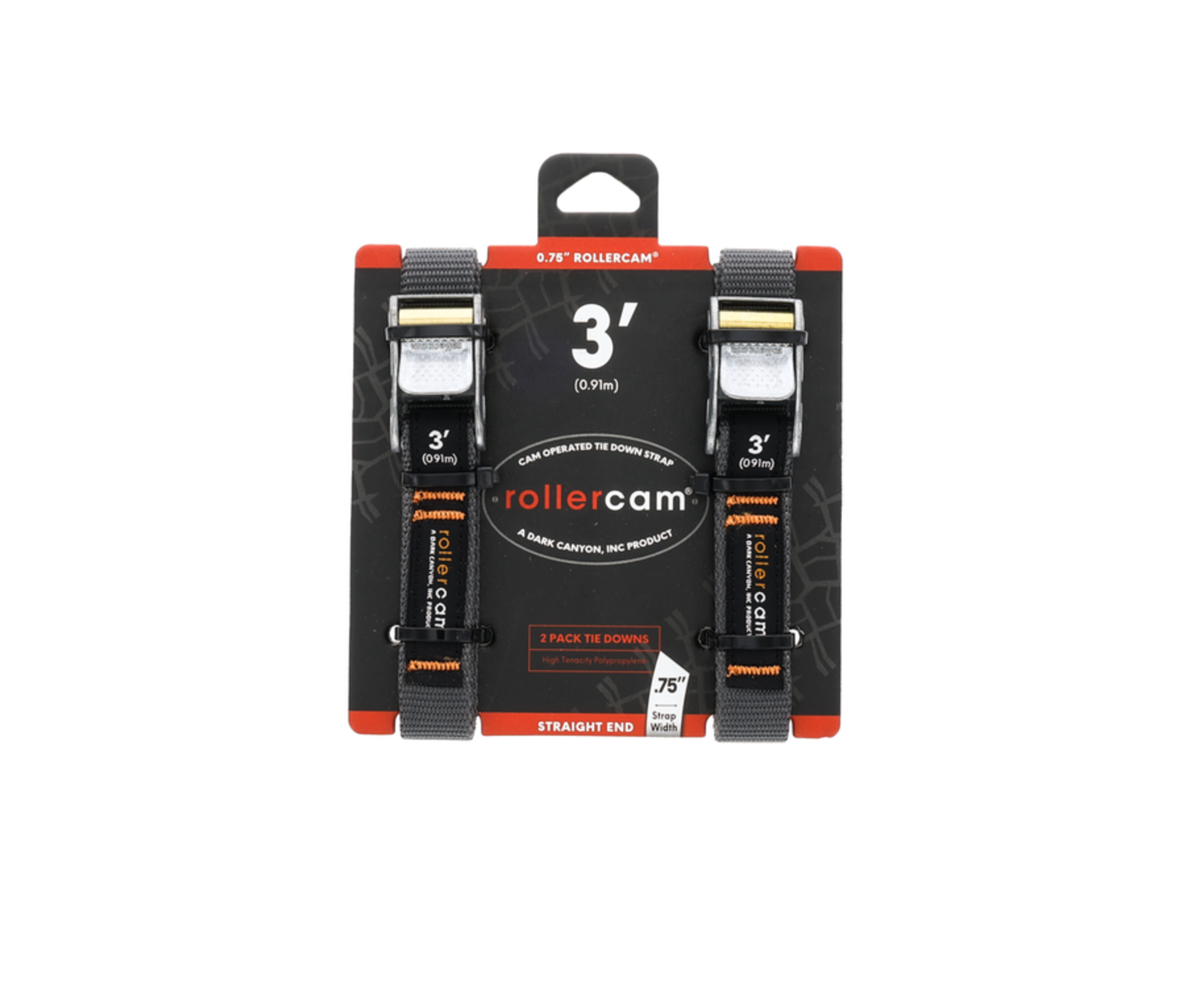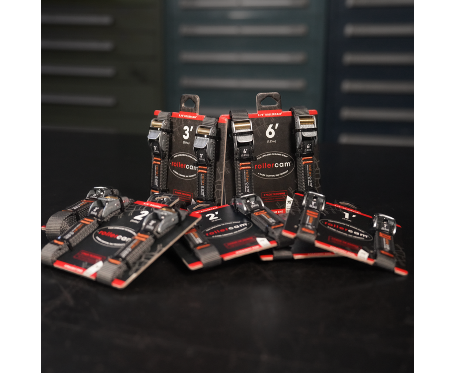 Two straight end straps in selected length with a Rollercam® on one end and a straight end to feed through the cam.