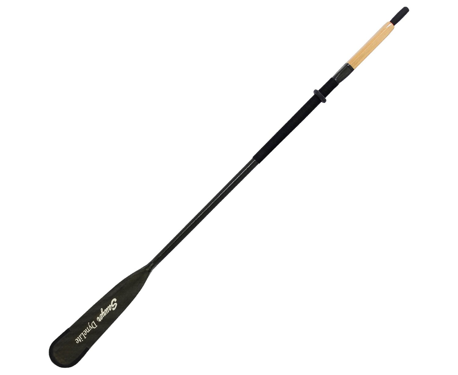 The Sawyer SquareTop DyneLite Oar is simply the best rowing, lightest swing weight, whitewater-proven oar on the planet! Solid laminated Douglas Fir from the handle to the tip of the blade. These oars combine the unduplicated feel and progressive flex that only a tapered wood shaft delivers with the added strength of a carbon fiber braid wrap. The name comes from the oversized square top from the handle to the rope wrap, which provides a counterbalanced feel without compromising flotation. Yes, a counterbalanced oar that floats flat on the water!