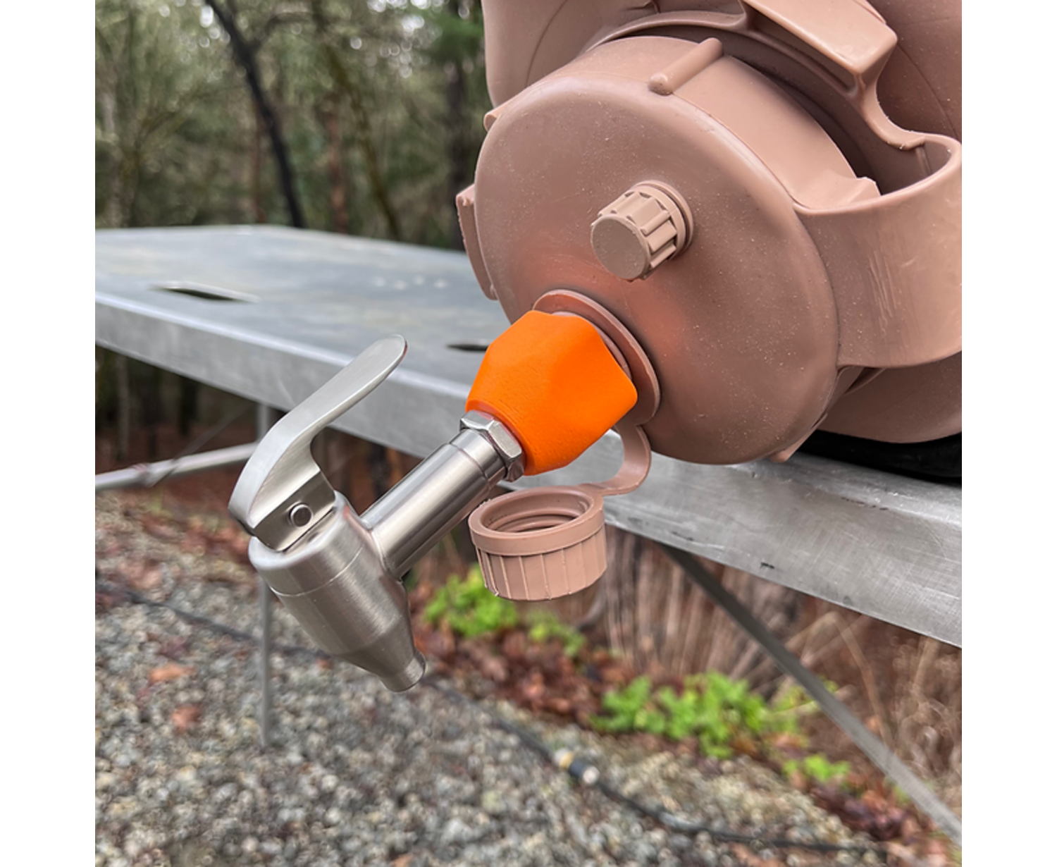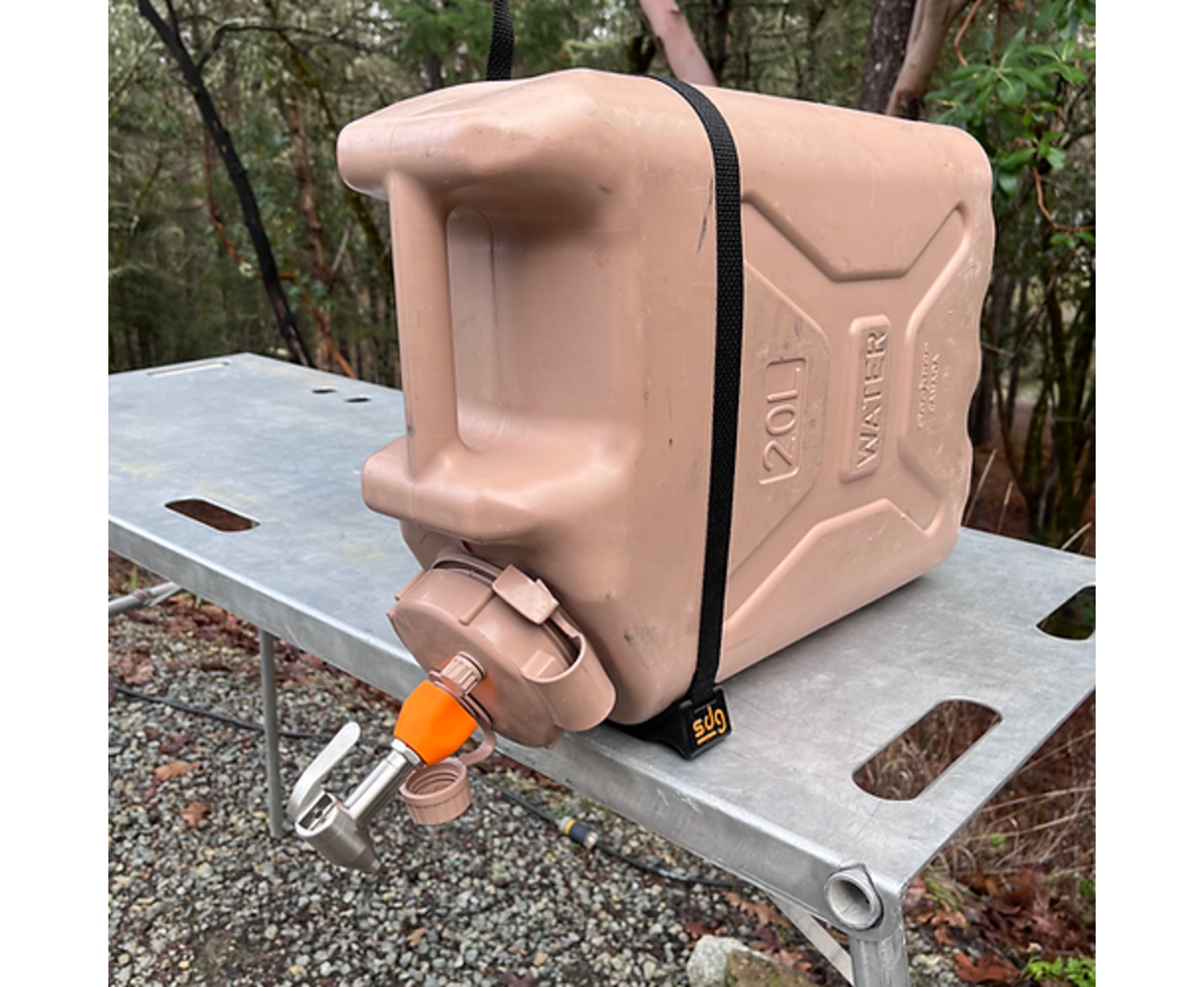Getting water out of your unstable Sceptre water jug (not included) just got much easier. Strap on the stabilizing stand, screw on the metal spout with the thread adapter, and set the jug on your camp table for clean, controlled pouring. No more wrestling with a heavy jug at camp. When it’s time to break down, the whole kit slips neatly back into the included mesh stuff sack.