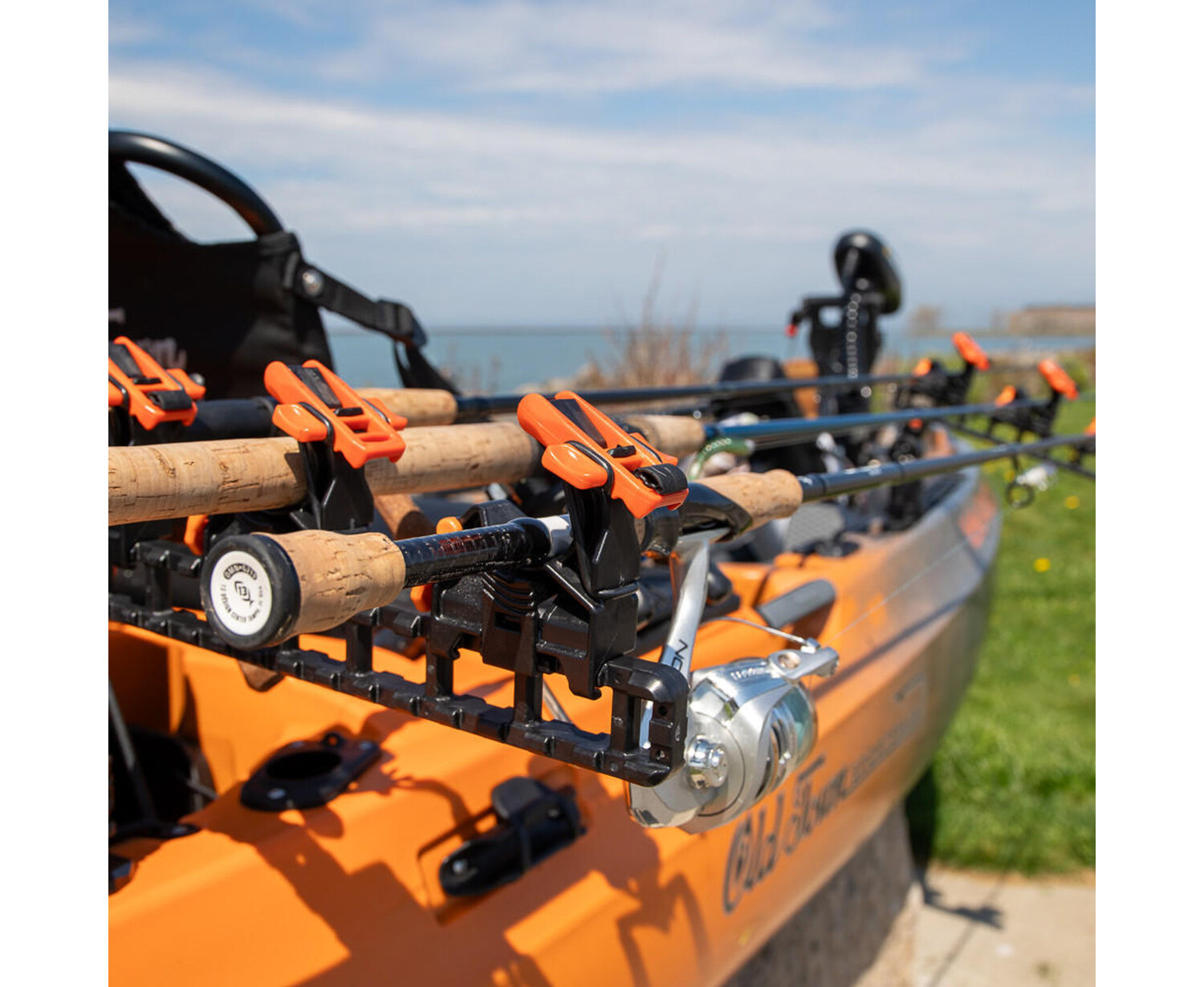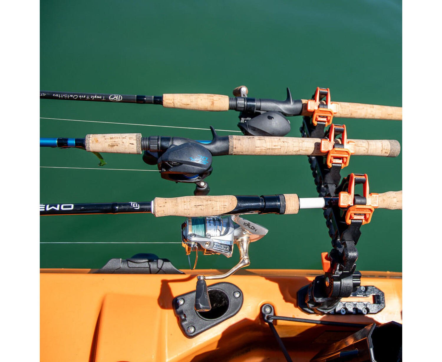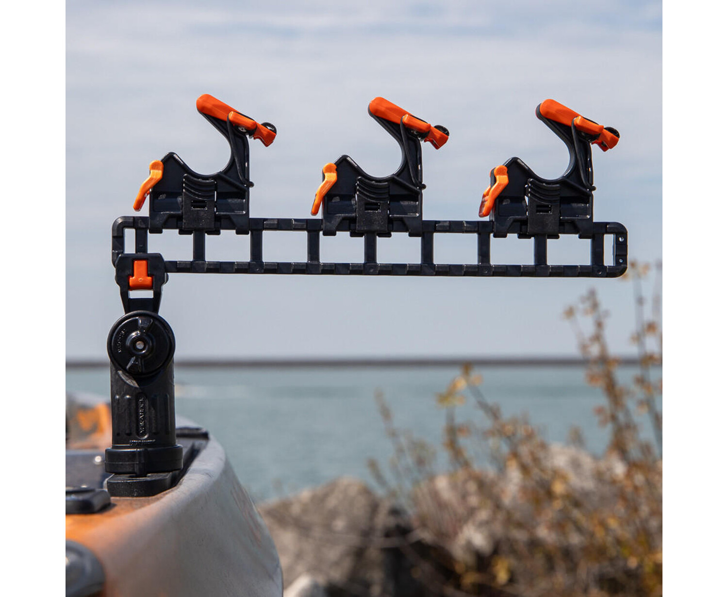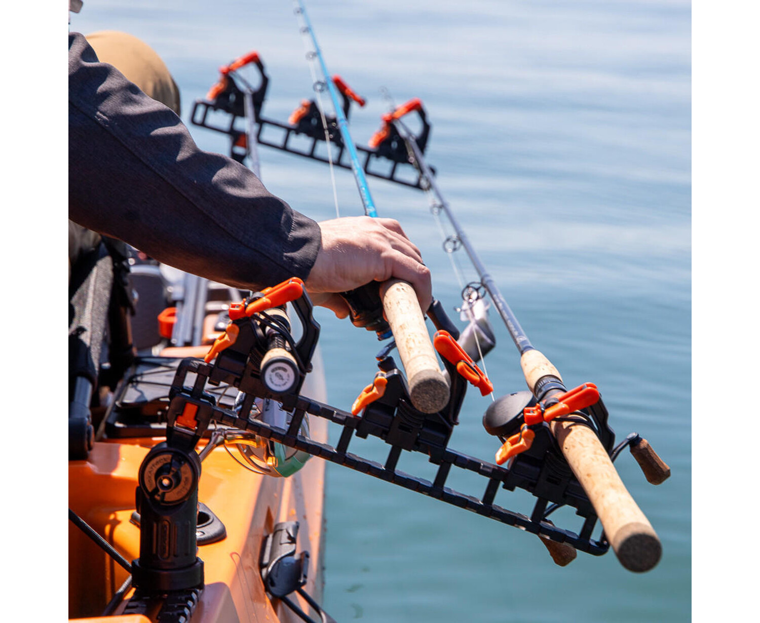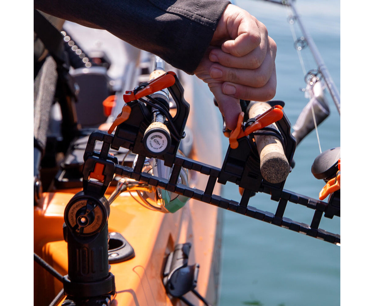 New to the YakAttack arsenal for 2024 is the SideStage Pro. The SideStage Pro is our take on a horizontal rod stager, but with all of the innovation and adjustability you would expect from YakAttack. This system is sold as a pair and comes with everything you need to stage and secure up to three rods. It introduces an all-new attachment system called ClickTrac. The ClickTrac Rail System allows you to easily attach, adjust and remove your accessories with the push of a button. For those who use a bow-mounted motor or pedal drive on their kayak off the side horizontal rod stagers like the SideStage could be a nice option to get three rods within reach and easy to access.