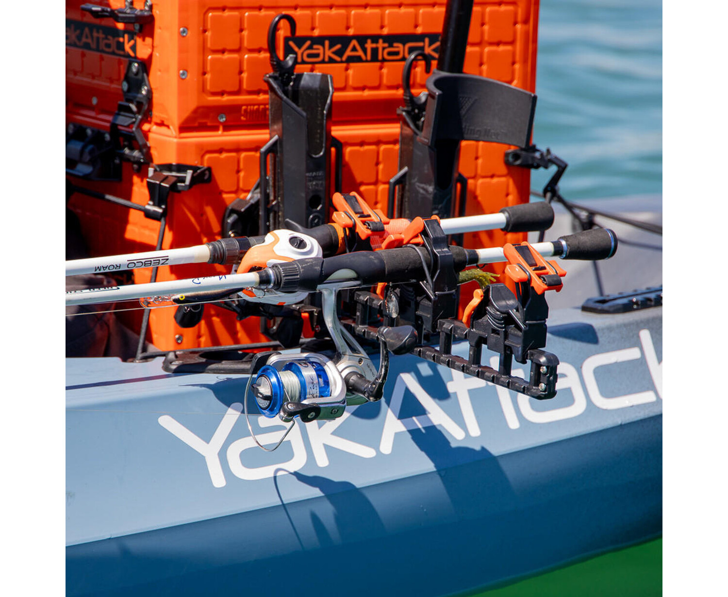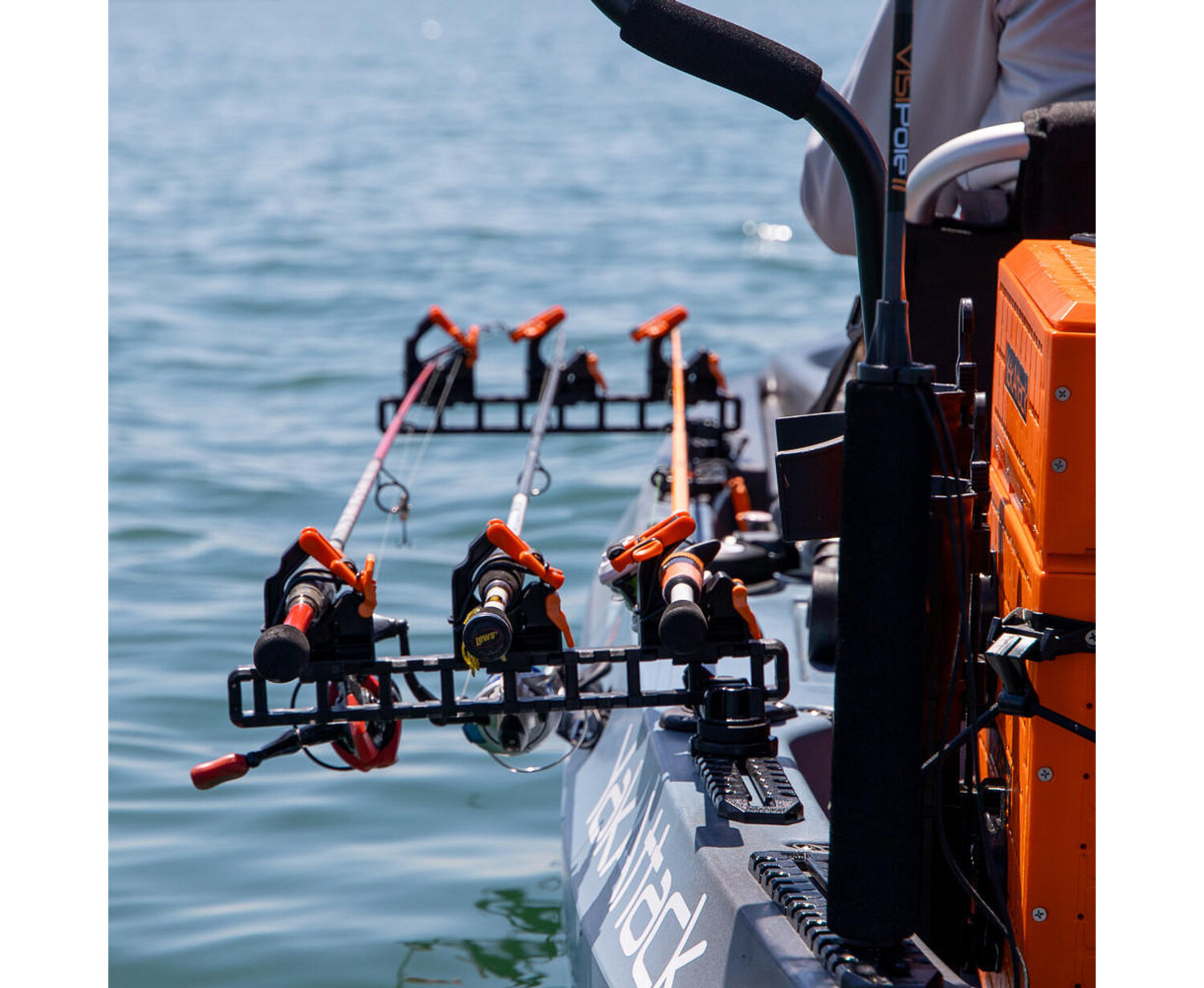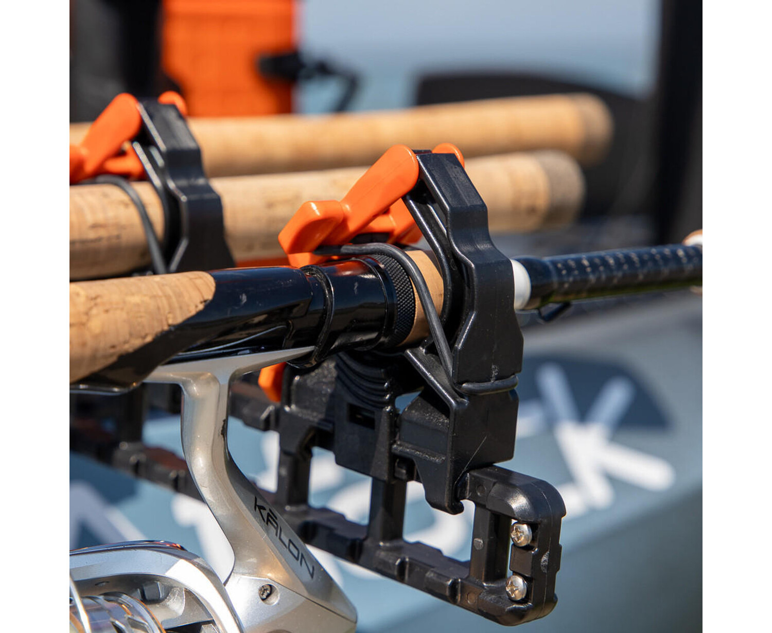 CloseNew to the YakAttack arsenal for 2024 is the SideStage. The SideStage is our take on a horizontal rod stager, but with all of the innovation and adjustability you would expect from YakAttack. This system is sold as a pair and comes with everything you need to stage and secure up to three rods. It introduces an all-new attachment system called ClickTrac. The ClickTrac Rail System allows you to easily attach, adjust and remove your accessories with the push of a button. For those who use a bow-mounted motor or pedal drive on their kayak off the side horizontal rod stagers like the SideStage could be a nice option to get three rods within reach and easy to access.