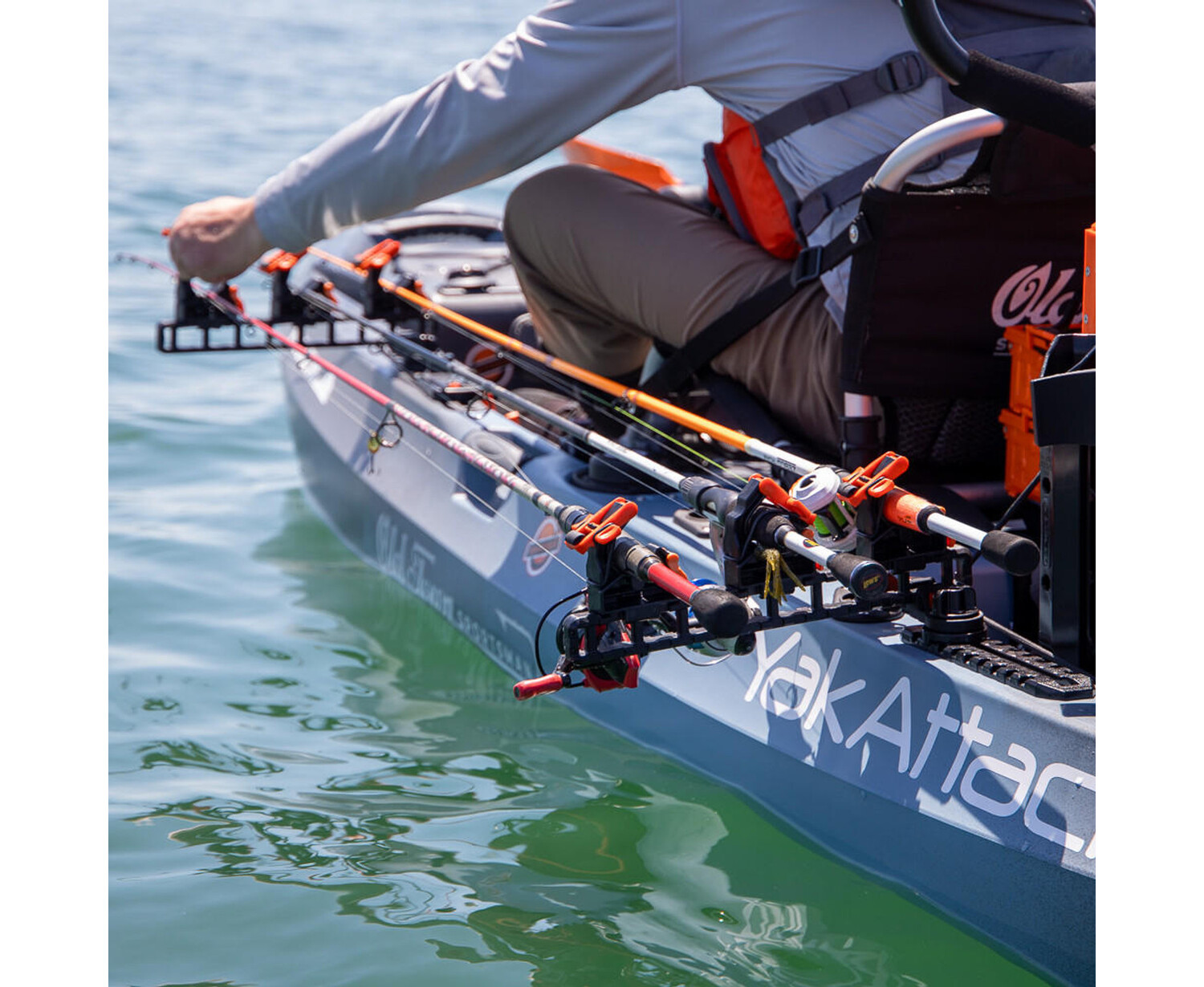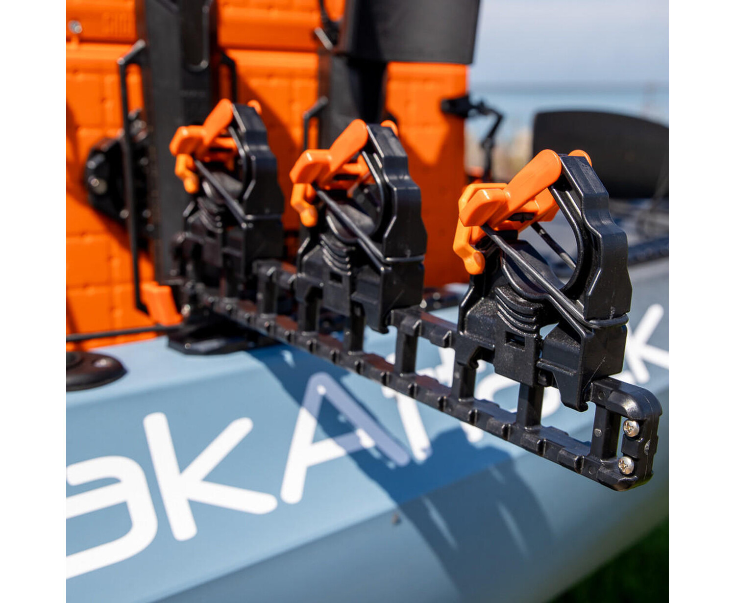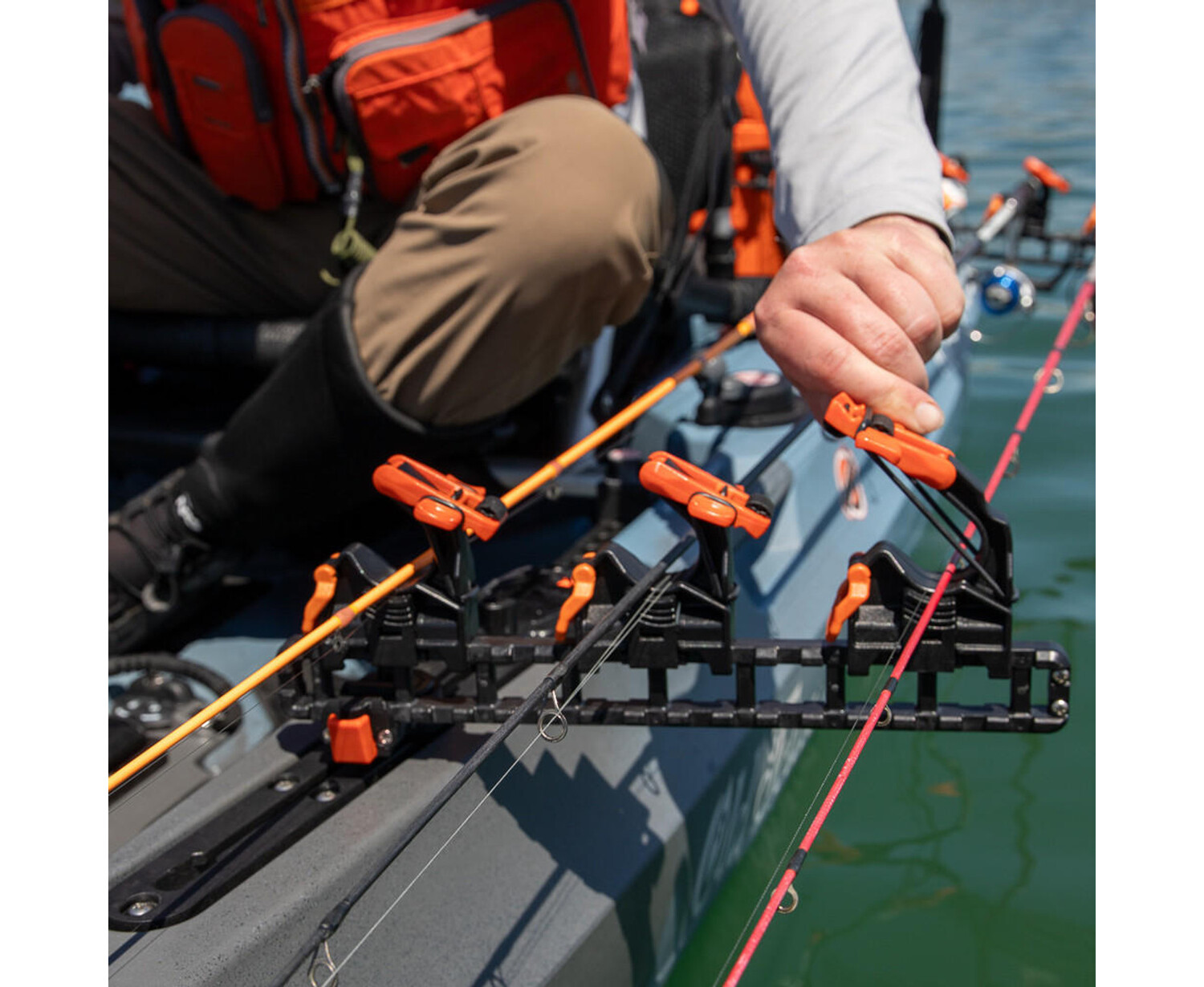 CloseNew to the YakAttack arsenal for 2024 is the SideStage. The SideStage is our take on a horizontal rod stager, but with all of the innovation and adjustability you would expect from YakAttack. This system is sold as a pair and comes with everything you need to stage and secure up to three rods. It introduces an all-new attachment system called ClickTrac. The ClickTrac Rail System allows you to easily attach, adjust and remove your accessories with the push of a button. For those who use a bow-mounted motor or pedal drive on their kayak off the side horizontal rod stagers like the SideStage could be a nice option to get three rods within reach and easy to access.